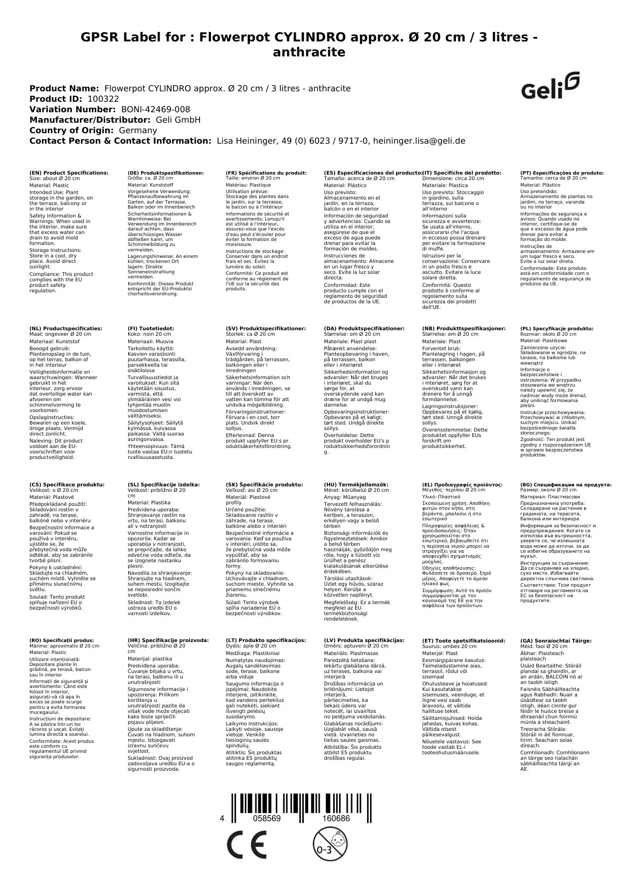 Le Pota Bláthanna CYLINDRO in Anthracite galánta, is féidir leat do ghairdín, do bhalcóin nó d'áit mhaireachtála a athrú go oasis glas. Comhcheanglaíonn an plandálaí cruinn seo feidhmiúlacht le dearadh nua-aimseartha agus cuireann sé baile is fearr ar fáil do do phlandaí. A bhuíochas leis an plaisteach láidir, tá an pota bláthanna oiriúnach le haghaidh úsáide laistigh agus lasmuigh. Bain sult as plandaí sláintiúla agus timpeallacht stylish!