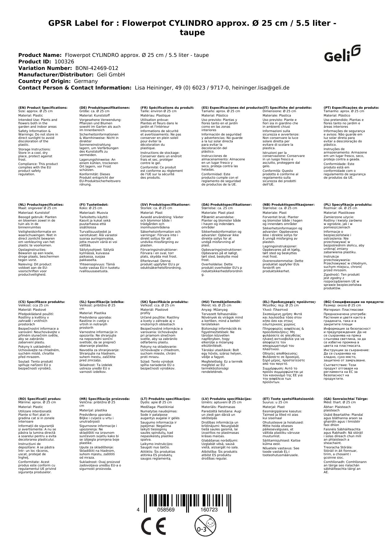Pota Bláthanna CYLINDRO, 25cm, Taupe