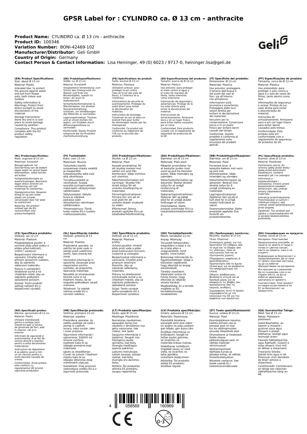 Tairgeann an CYLINDRO faoi-thráidire i dath antraicít cosaint is fearr do do phlandaí agus do dhromchlaí. Le trastomhas de thart ar 13 cm, tá sé oiriúnach do photaí beaga go meánmhéide agus cuireann sé cosc iontaofa ar uisce sceite. Mar sin, fanann do urláir glan agus do phlandaí sláintiúil.