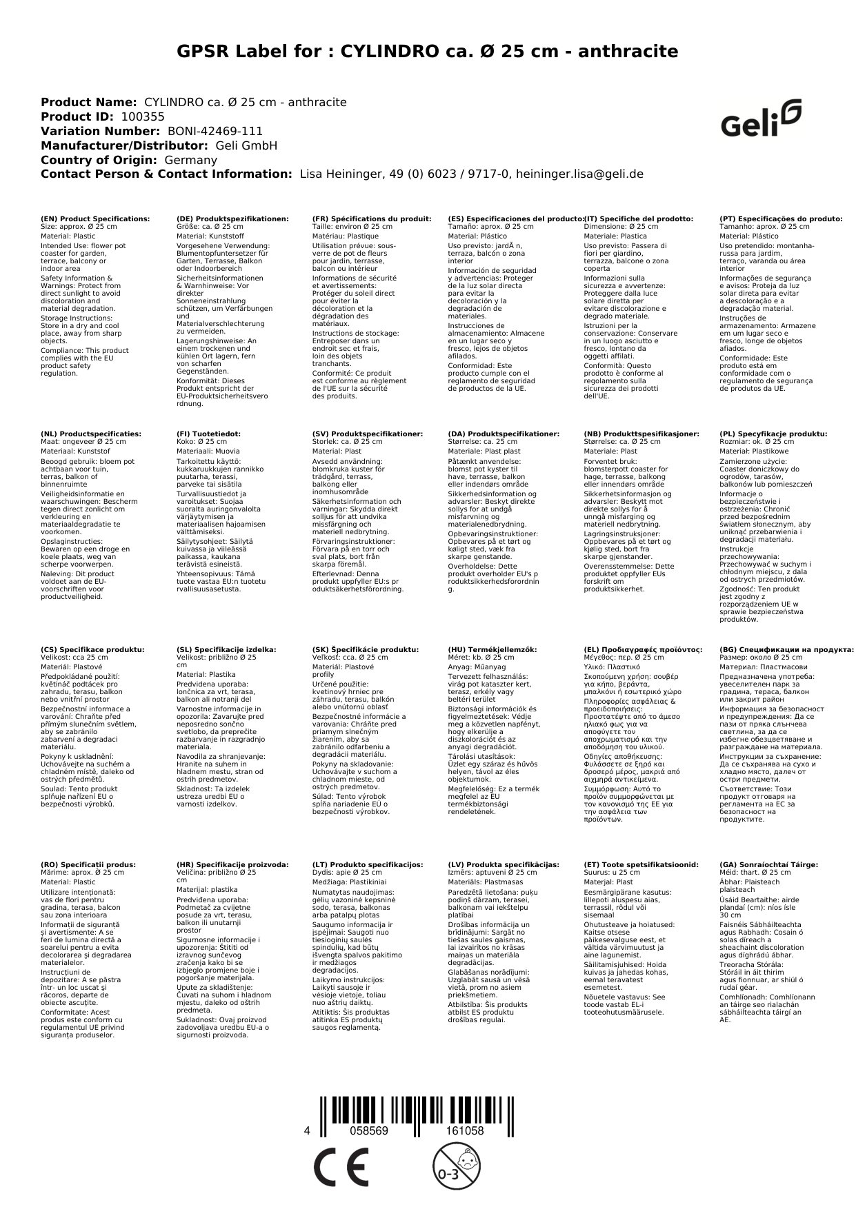 An bhfuil tú ag lorg réiteach praiticiúil agus stylish chun do phlandaí a chosaint ar ró-uisce agus chun do bhalcóin nó do ghairdín a fheabhsú ag an am céanna? Cuireann an Faoi-Tráidire Pota Bláthanna CYLINDRO in Antraicít díreach sin ar fáil! Ní hamháin go gcosnaíonn an faoi-tráidire seo do phlandaí ó thriomú, ach cosnaíonn sé an talamh freisin ó spotaí uisce míthaitneamhacha agus smionagar ithreach. Mar sin fanann gach rud glan agus slachtmhar.