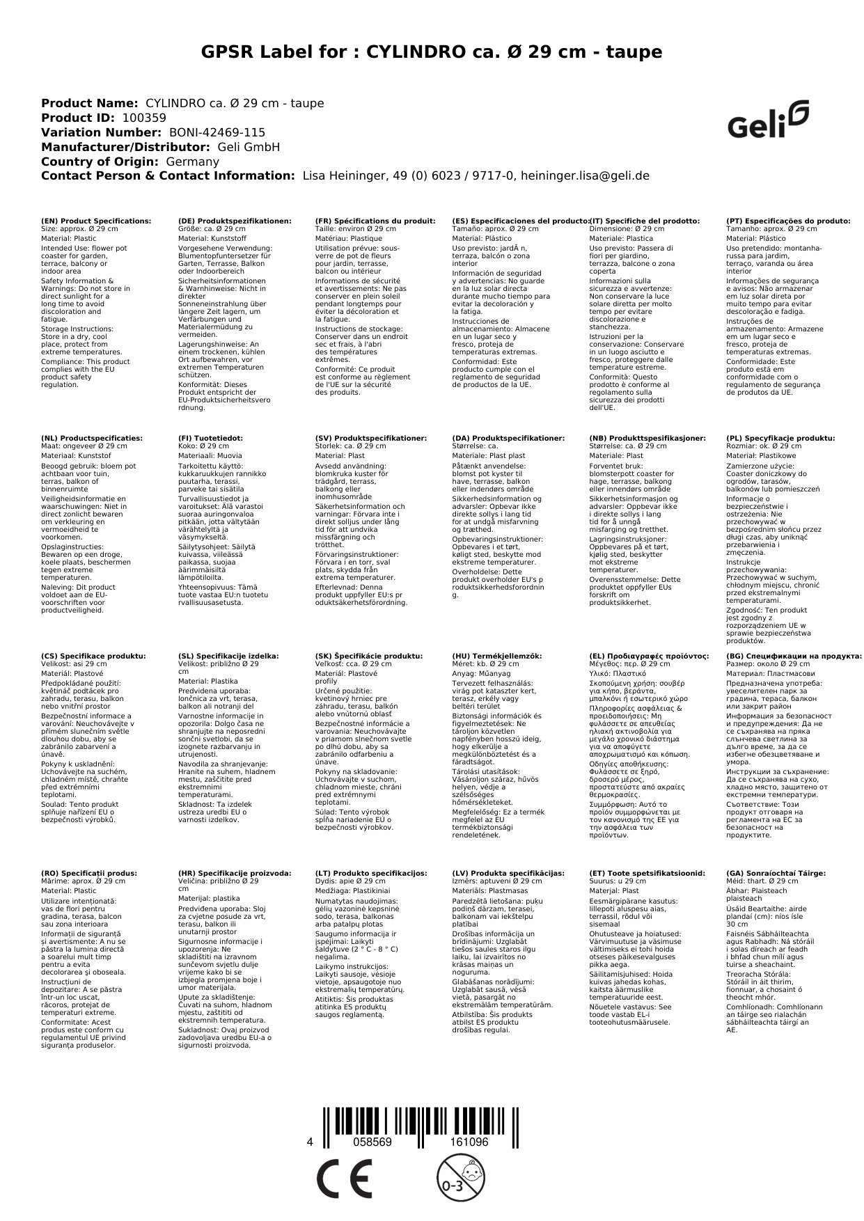 Cuireann ár bhfaoi-tráidirí plandaí CYLINDRO cosaint iontaofa agus feidhmiúlacht ar fáil do do phlandaí. Le trastomhas de thart ar 29 cm agus an foirgneamh láidir plaisteach, seasann siad le húsáid laethúil. Cuireann an dath galánta taupe isteach go comhchuí in aon timpeallacht. Cén fáth go bhfuil sé seo tábhachtach duit: gheobhaidh tú faoi-thráidire marthanach agus stylish a thacaíonn le do phlandaí go hoptamach.