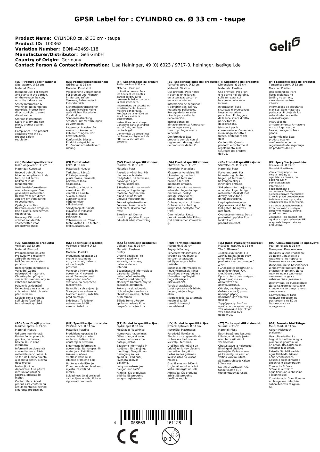 Cosnaíonn ár bhfaoi-thráidire CYLINDRO go hiontaofa i gcoinne uisce seasta agus salachar. Tá sé ar fáil i méideanna éagsúla ó 12 go 60 cm ar trastomhas, rud a fhágann go bhfuil sé oiriúnach do do photaí bláthanna. Ráthaíonn an tógáil plaisteach láidir marthanacht. Ciallaíonn sé seo duit: Dromchlaí glana agus plandaí sláintiúla.