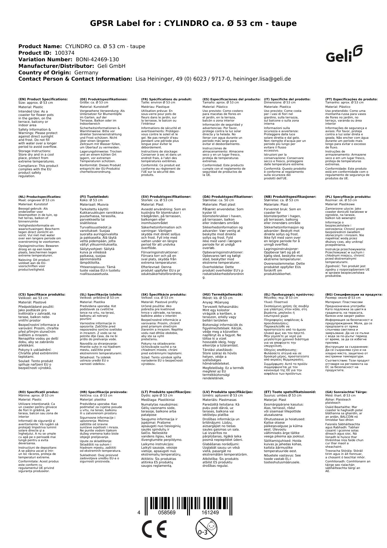 Pláta Pota Bláthanna Cylindro, Fótaire Plandaí Taupe Ø53cm