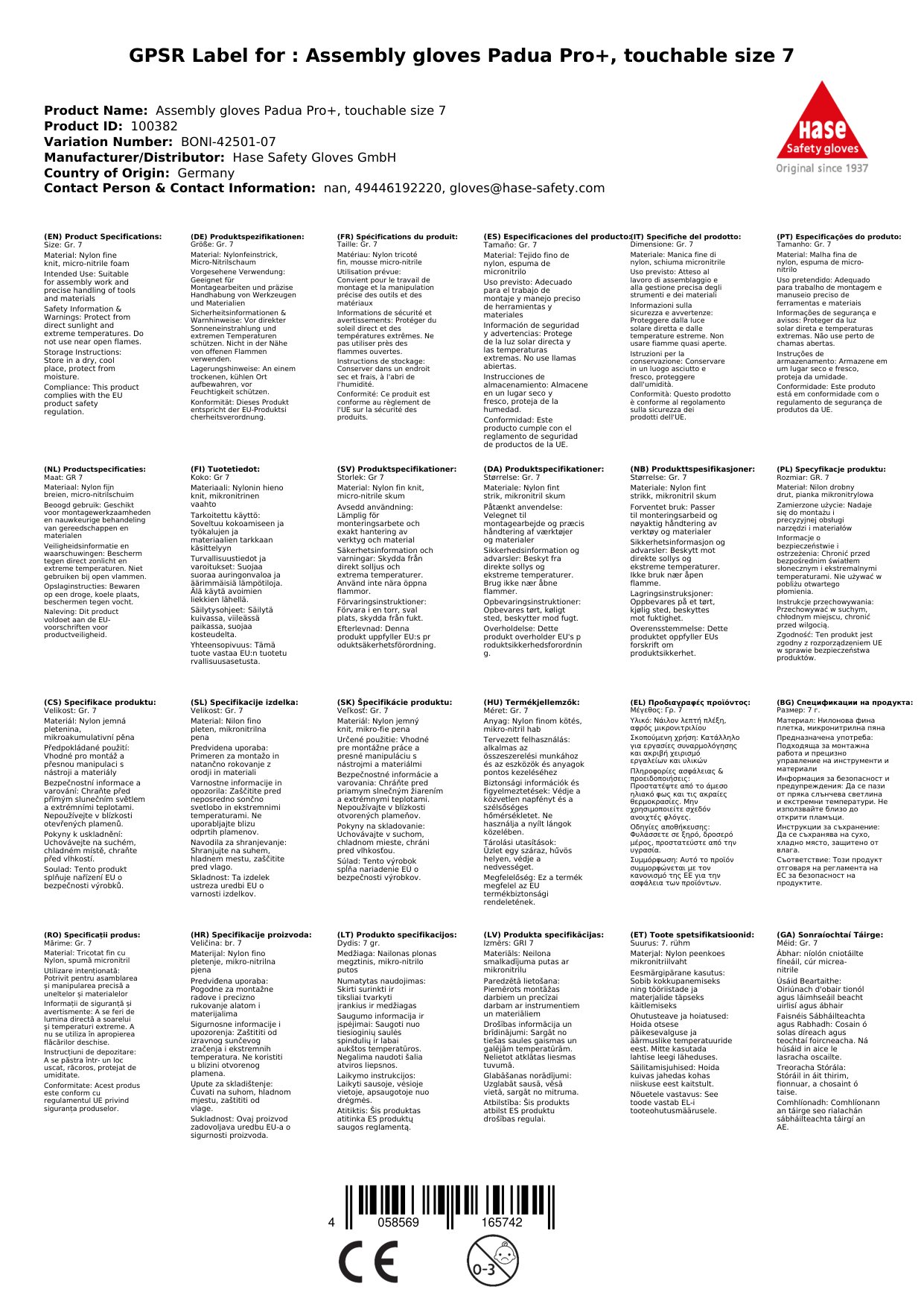 Ríomhphost na Duine Freagrach don AE: gloves@hase-safety.com