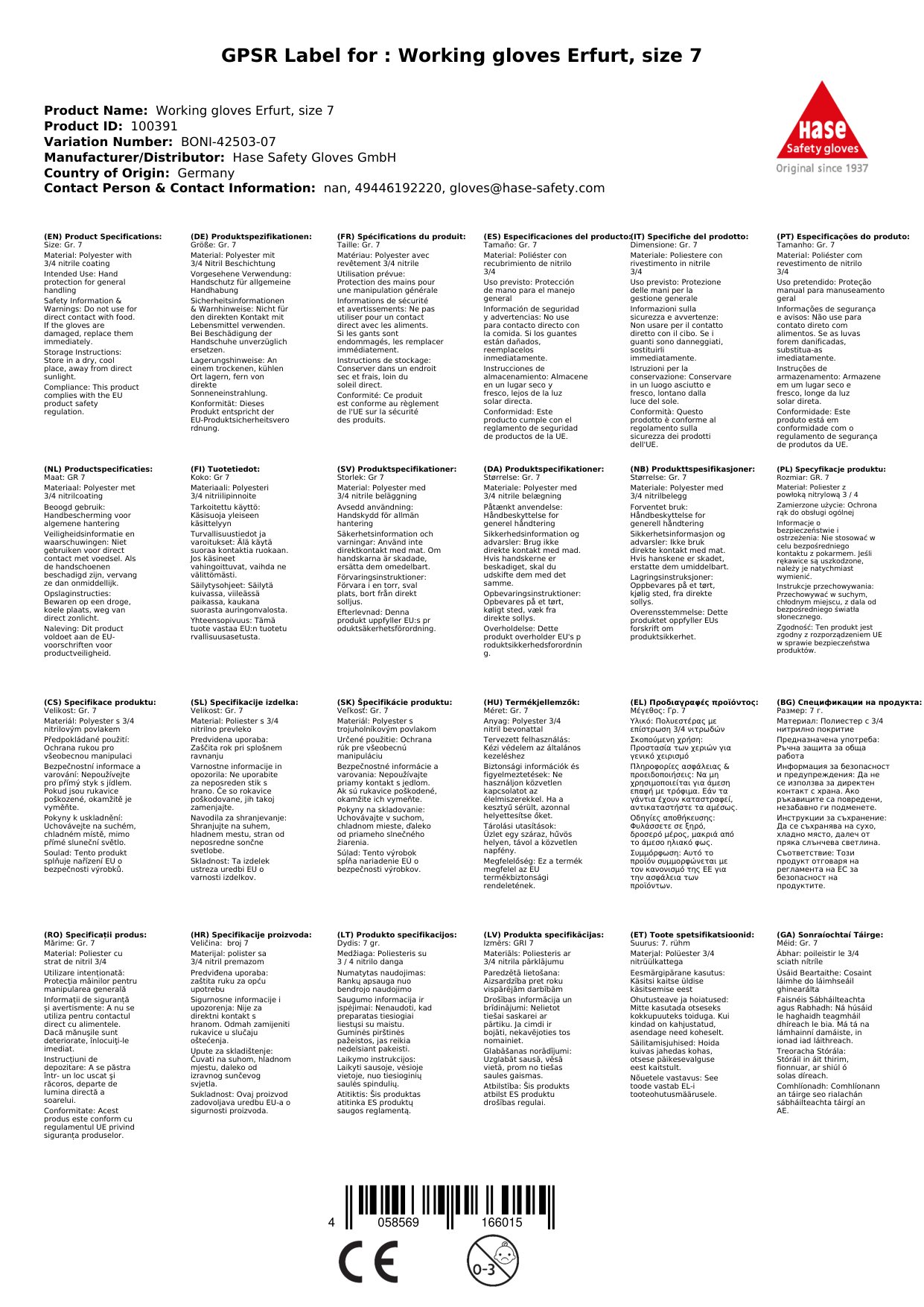 Lámhainní oibre nítríle as poileistear le sciath nítríle 3/4