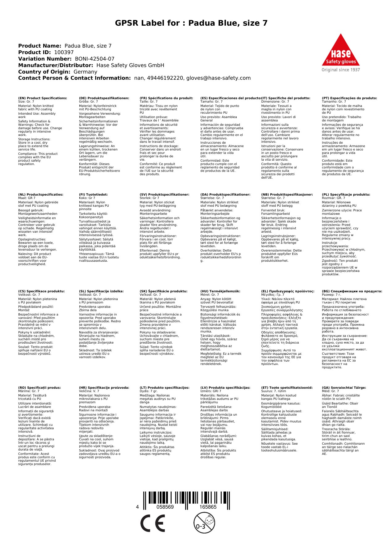 Tá na lámhainní deimhnithe ag Öko-Tex agus mar sin déantar tástáil orthu le haghaidh substaintí díobhálacha. Mar sin féin, molaimid d’othair ailléirgeacha tástáil craicinn a dhéanamh sula gcaitheann siad iad.