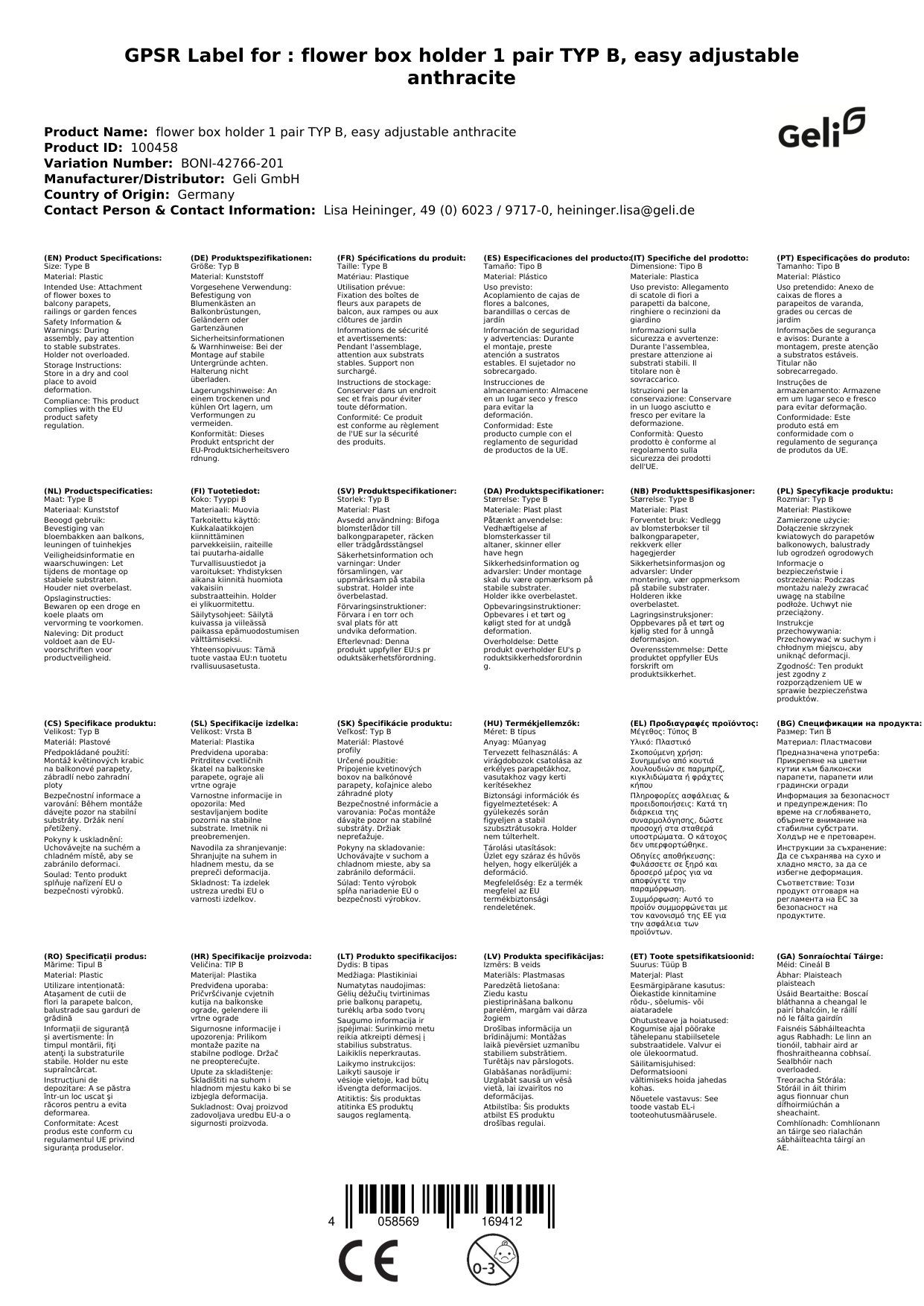 Sealbhóir Bosca Bláthanna TYP B, éasca le coigeartú i anthrazit