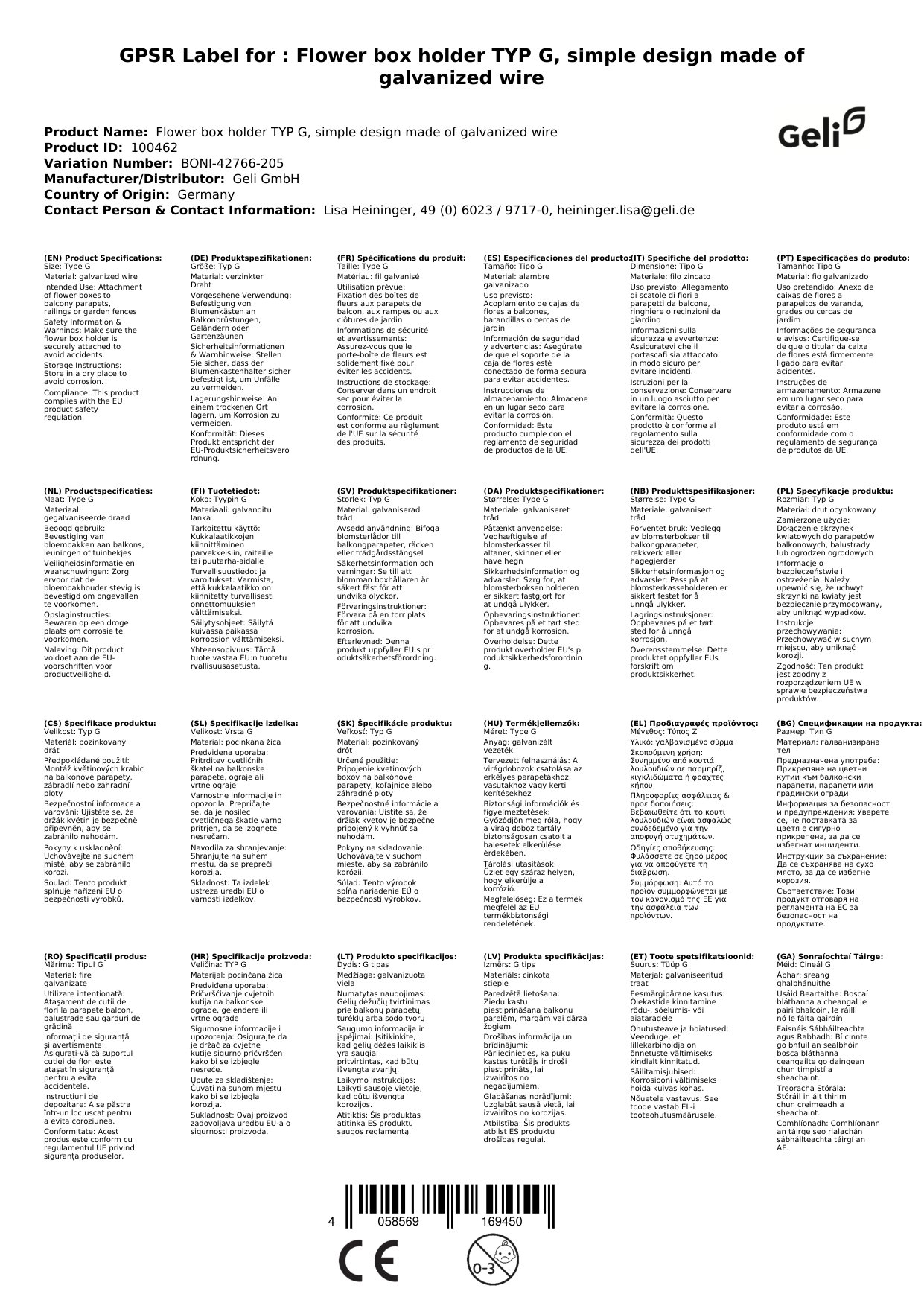 Cuireann ár Sealbhóir Bosca Bláthanna Cineál G bealach simplí agus sábháilte ar fáil chun do bhoscaí bláthanna a cheangal. Tá sé déanta as sreang ghalbhánaithe, rud a fhágann go bhfuil sé thar a bheith láidir agus buan. Le cumas ualaigh suas le 25 kg (in aghaidh an phéire), is féidir leat fiú boscaí bláthanna níos troime a cheangal go héasca. Cén fáth go bhfuil sé seo tábhachtach duitse: Faigheann tú lúibín cobhsaí agus iontaofa a thacaíonn go sábháilte le do phlandaí agus a fheabhsaíonn do bhalcóin nó do ghairdín.