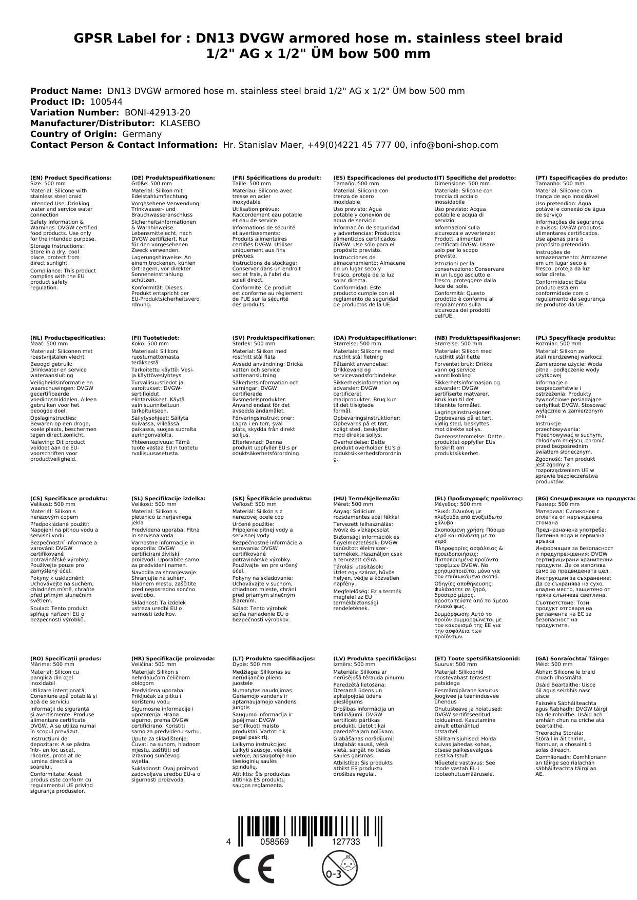 Cuireann ár bpíobán armúrtha le braid cruach dhosmálta solúbthacht agus sábháilteacht ar fáil duit le haghaidh do shuiteálacha uisce óil agus uisce tí. A bhuíochas leis an deimhniú DVGW, is féidir leat brath ar an gcáilíocht agus ar an oiriúnacht don réimse uisce óil. Cinntíonn an píobán silicone istigh nasc sláinteach agus solúbtha. Gnéithe Táirge, Sonraí Teicniúla, Príomhshonraíochtaí, Buntáistí, Feidhmiú, Ceisteanna Coitianta (CC), Cén fáth Boni-Shop