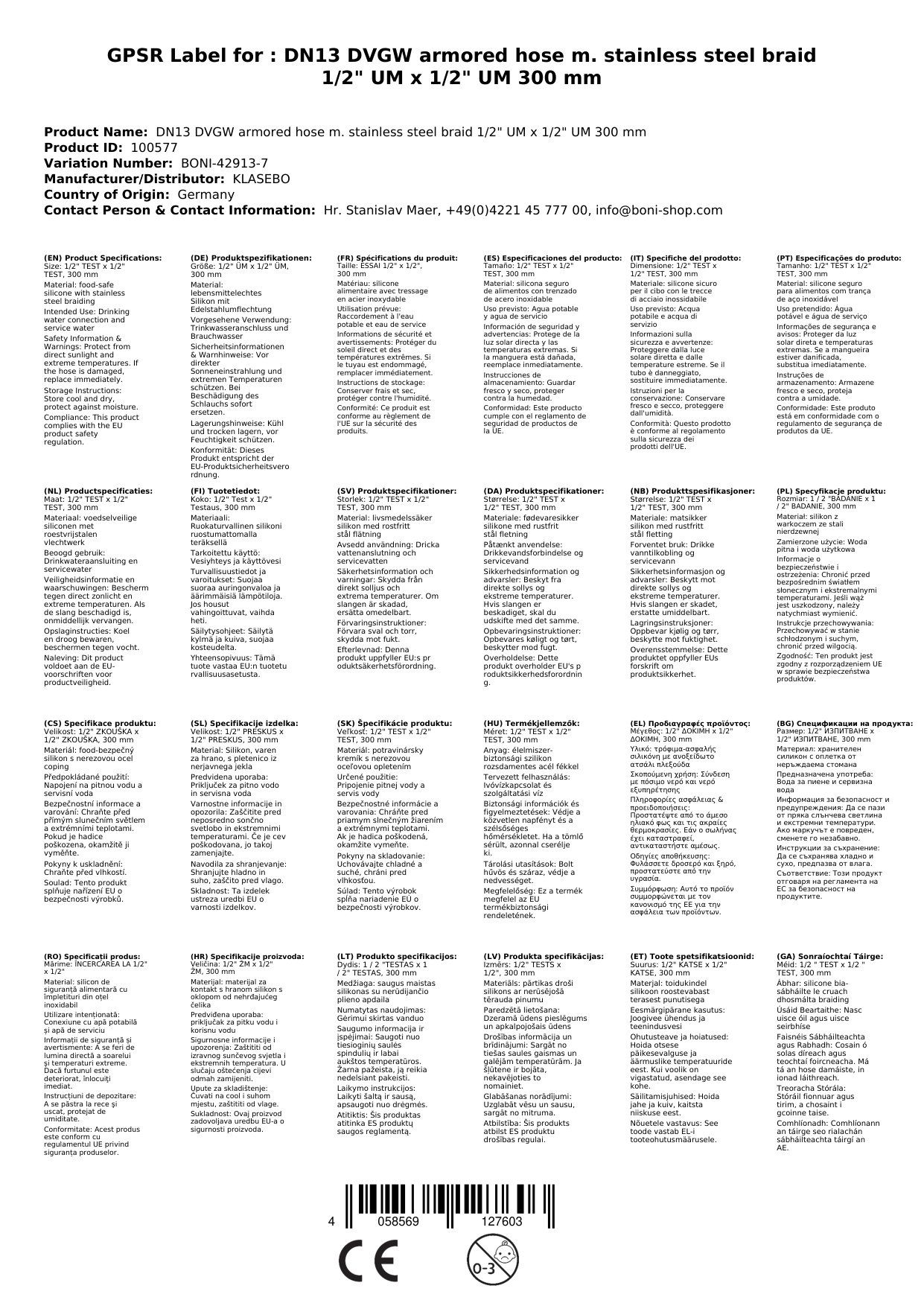 Cuireann ár Píobán Armúrtha cosaint iontaofa ar fáil do d'suiteáil uisce óil. Leis an deimhniú DVGW agus an braid cruach dhosmálta, comhlíonann sé na caighdeáin is airde. A bhuíochas leis an bpíobán silicone solúbtha, tá an suiteáil éasca fiú in áiteanna atá deacair a rochtain. Cén fáth go bhfuil sé seo tábhachtach duit: Is féidir leat brath ar phíobán buan agus sábháilte nach ndéanann dochar do cháilíocht uisce óil.