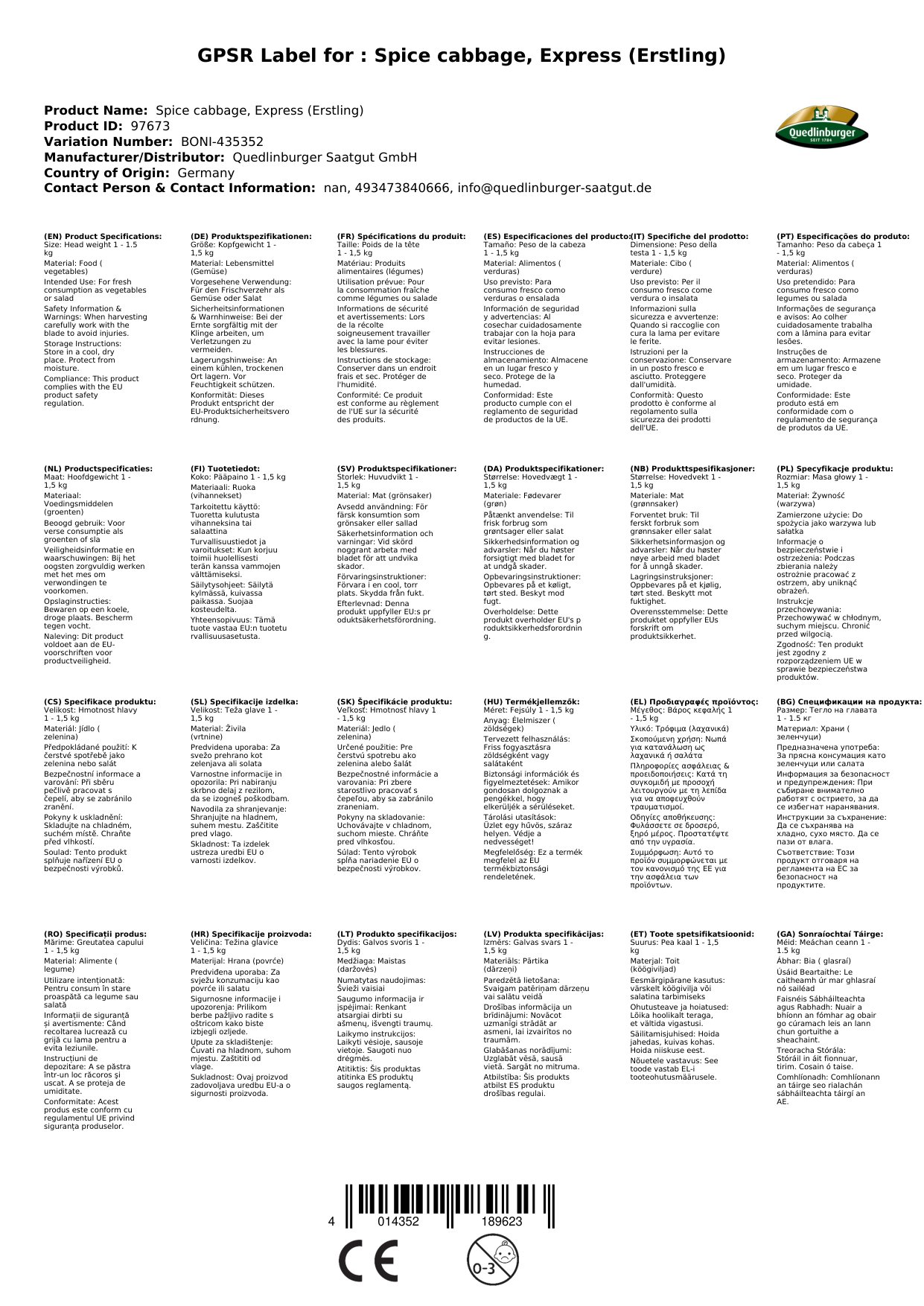 Cuir ceist chun níos mó a fhoghlaim faoin táirgeCúram: Cuir síolta go tanaí, 0.5 - 1 cm domhain, brúigh síos, clúdaigh agus coinnigh tais iad. Más gá, déan iad a phicéail. Thart ar 6 seachtaine tar éis síolrú, cuir amach iad le 40x50 cm nó déan iad a scaradh. Is breá leis suíomh grianmhar agus ithir chothaitheach, mheánach throm, láib. Scaoil go rialta, cuir leasú agus coinnigh tais iad.