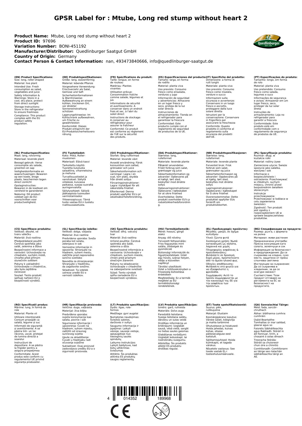 | Brand: | Quedlinburger |
