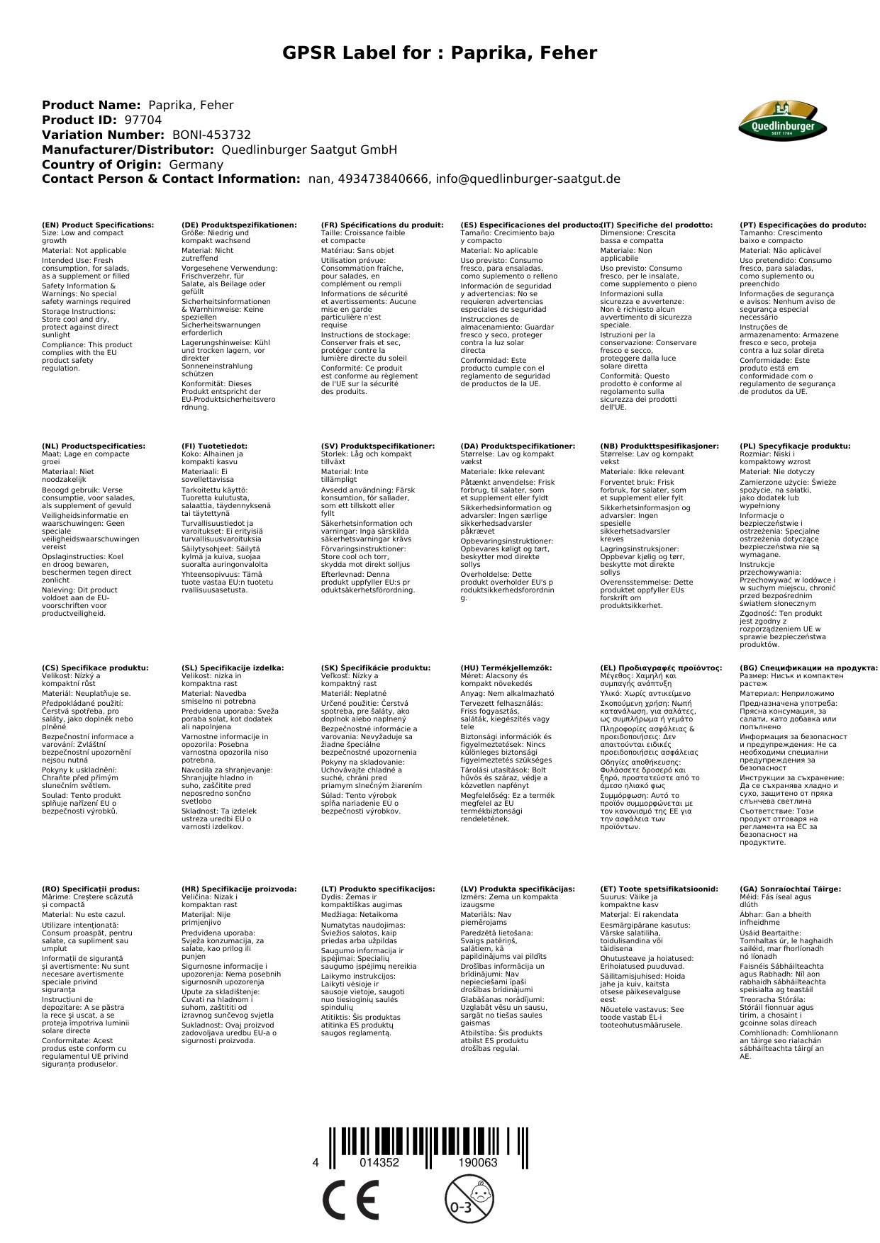 | Brand: | Quedlinburger |