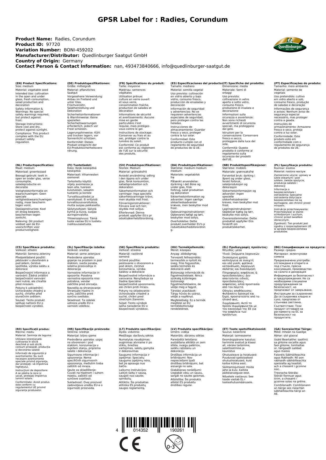 | Brand: | Quedlinburger |