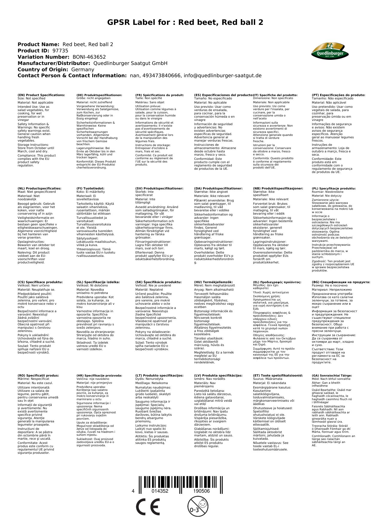 | Brand: | Quedlinburger |