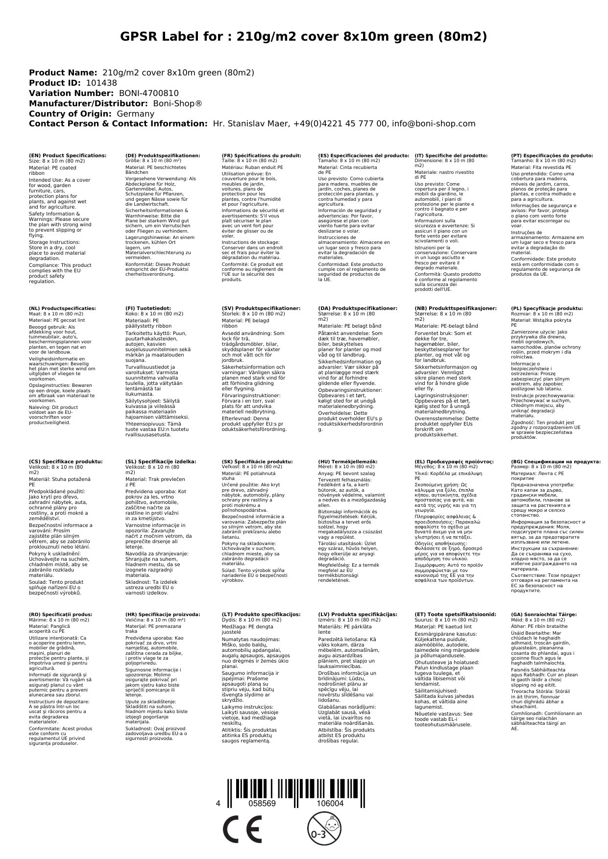 Cuir ceist chun níos mó a fhoghlaim faoin táirgeTarpaulin 210g/m², 8x10m, uiscedhíonach, reissfest, UV-stabil, clúdach glas