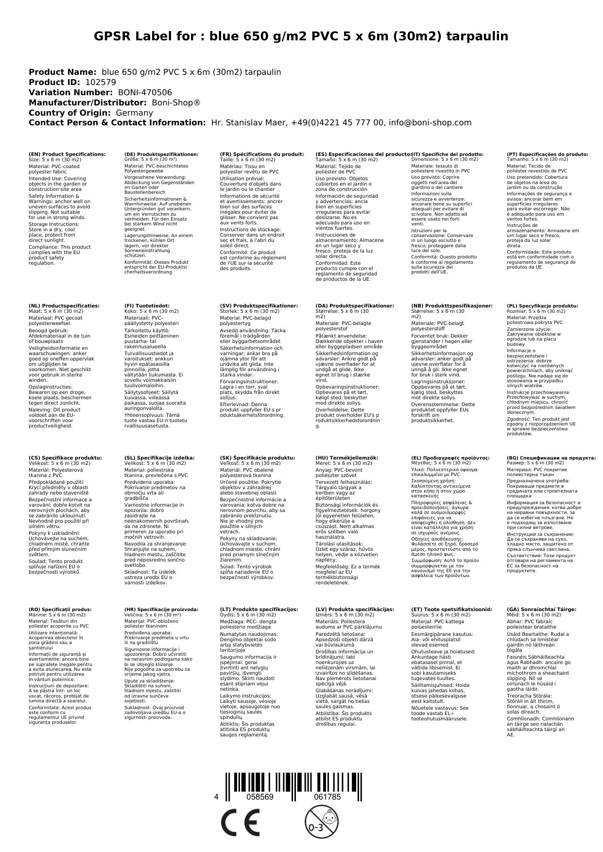 Cosaint iontaofa a thairgeann ár gClúdach PVC. Le meáchan 650g/m² agus toisí 5x6m, tá sé oiriúnach d'fheidhmchláir go leor. Cinntíonn na súileáin práis ceangail éasca. Cén fáth a bhfuil sé seo tábhachtach duitse: Faigheann tú clúdach láidir agus buan atá éasca le láimhseáil.