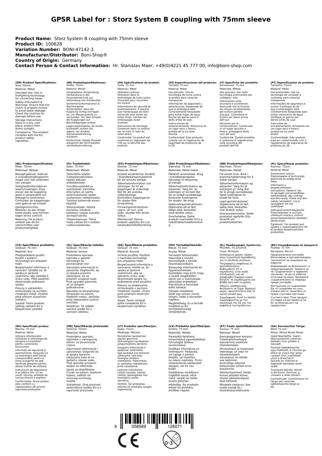 Cuir ceist chun níos mó a fhoghlaim faoin táirgeCóras Storz B Cúpláil le 75mm Tülle DIN 75-B