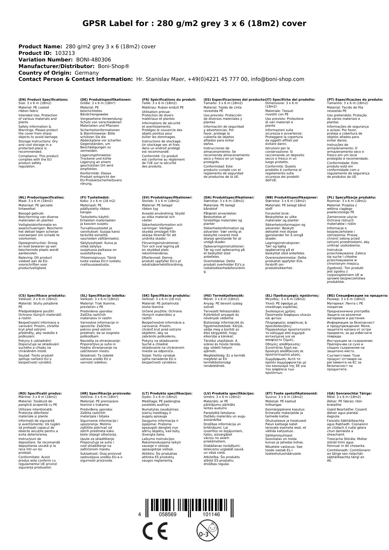 Clúdach 280g/m², liath, uiscedhíonach, dian-dhíograiseach, UV, PE, 3x6m (18m²)