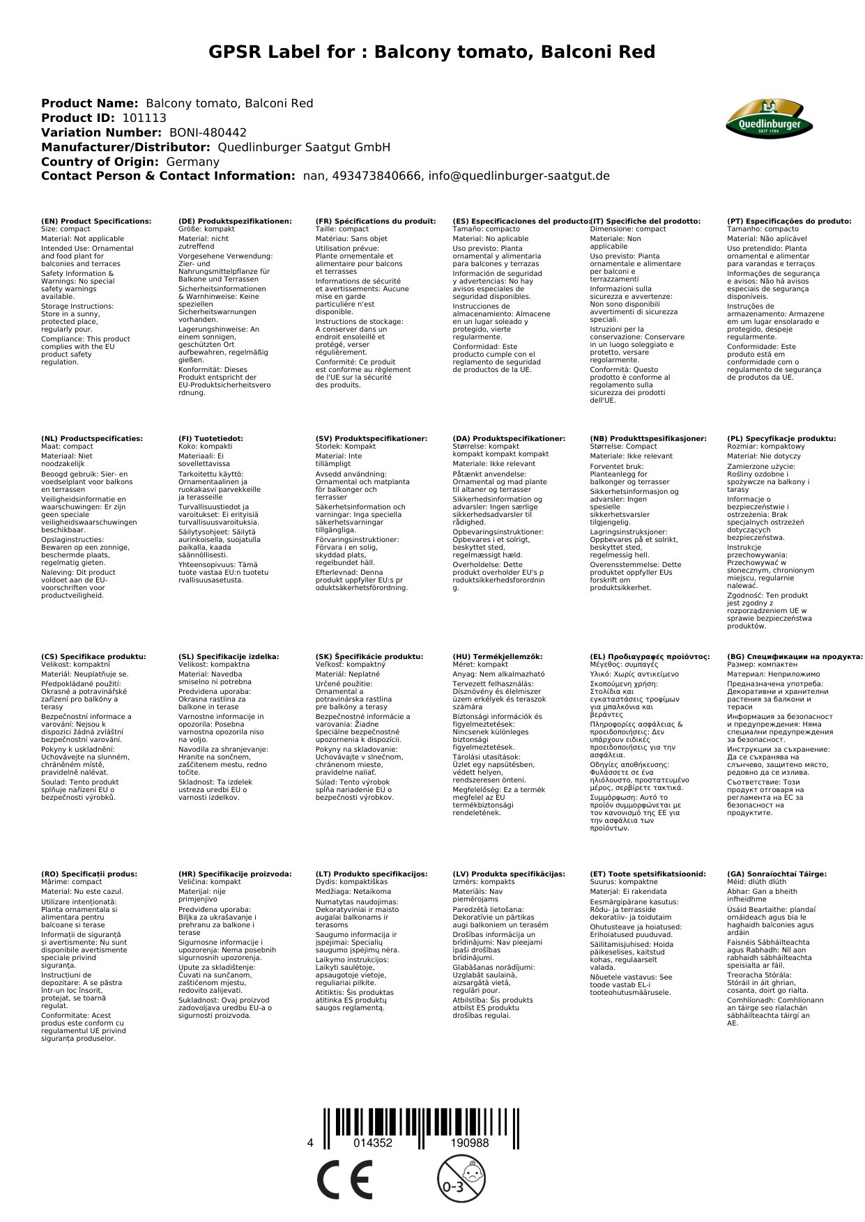| Brand: | Quedlinburger |