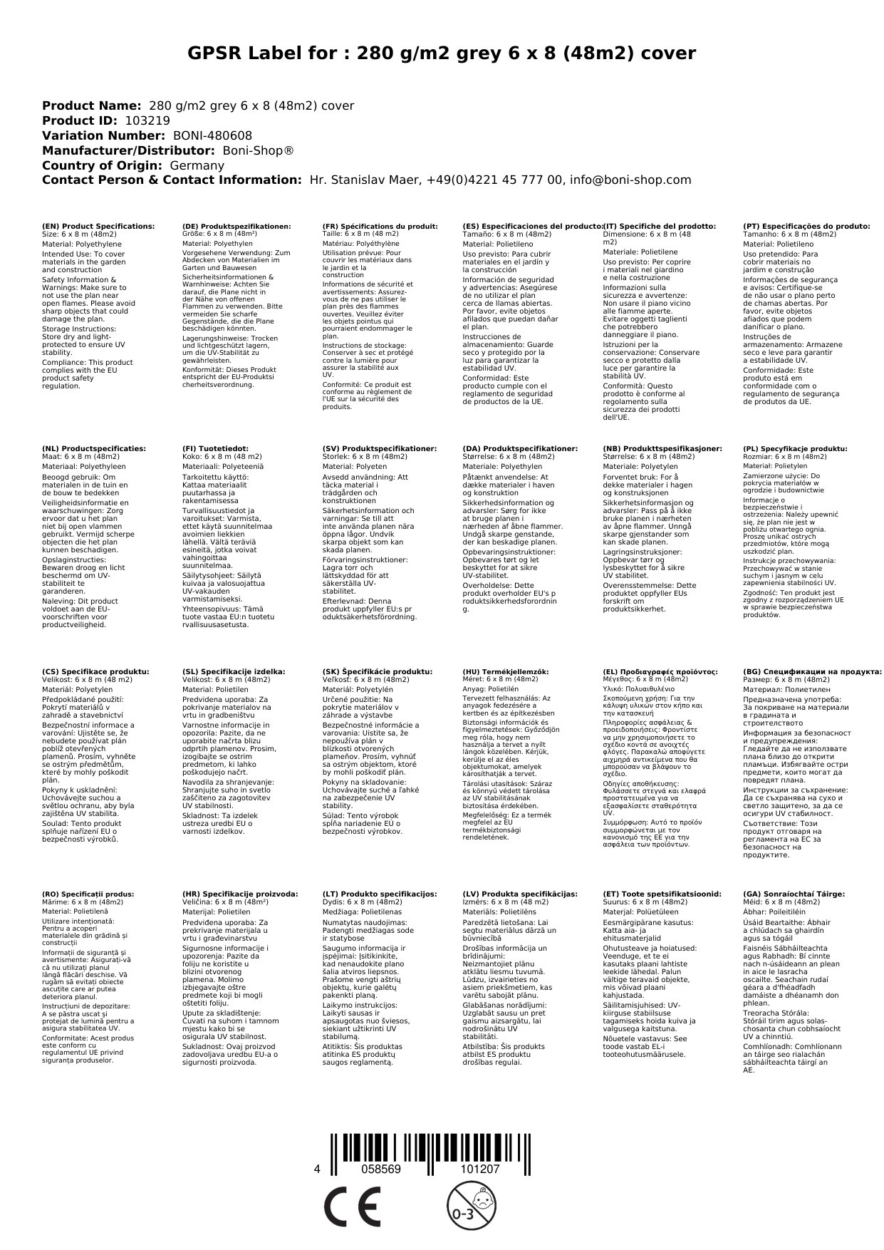 Cuir ceist chun níos mó a fhoghlaim faoin táirgeClúdach tarpaulin, tarpaulin 6x8m (48m²), 280g, clúdach liath, uiscedhíonach, reißfest, UV-stabil