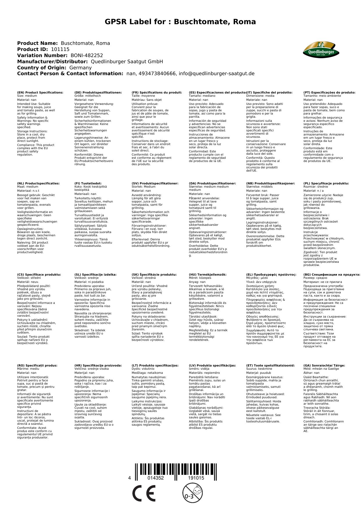 | Brand: | Quedlinburger |