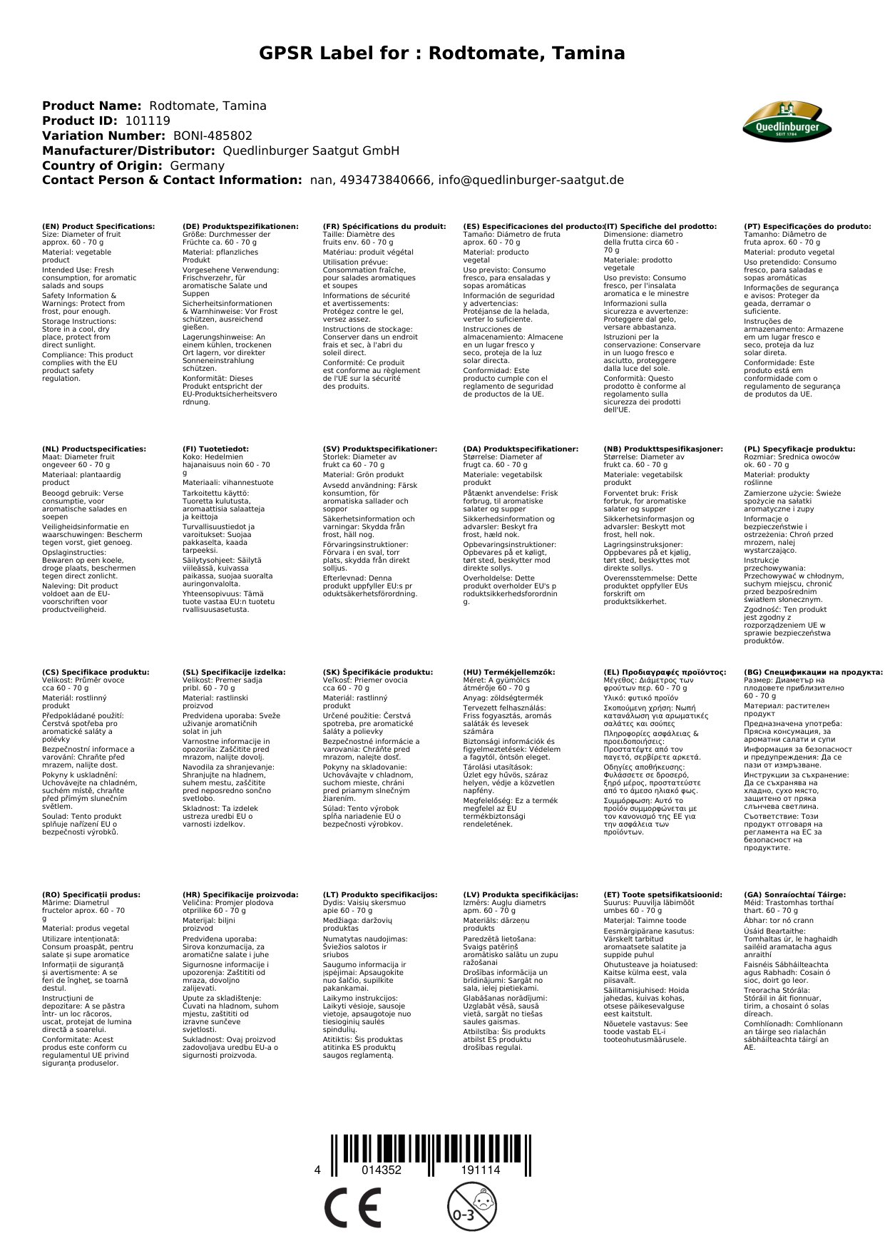 Leid: Teastaíonn tacaíocht ó na plandaí ar mhaide nó ar shreang. Chun aibíocht tapa a bhaint amach, ba chóir na taobh-ghéaga a bhaint agus iad a ghearradh tar éis an 5ú bláth.