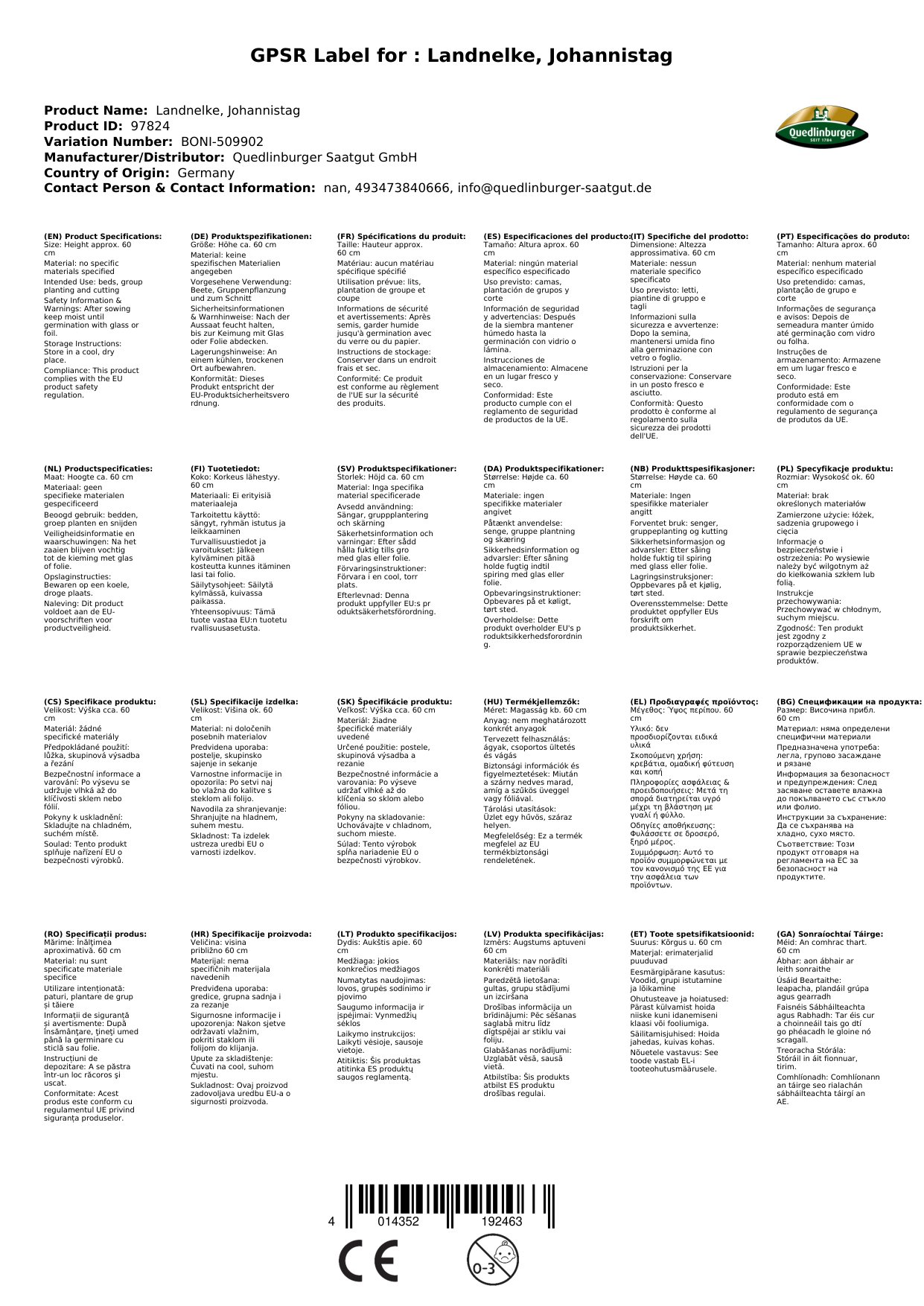 | Brand: | Quedlinburger |