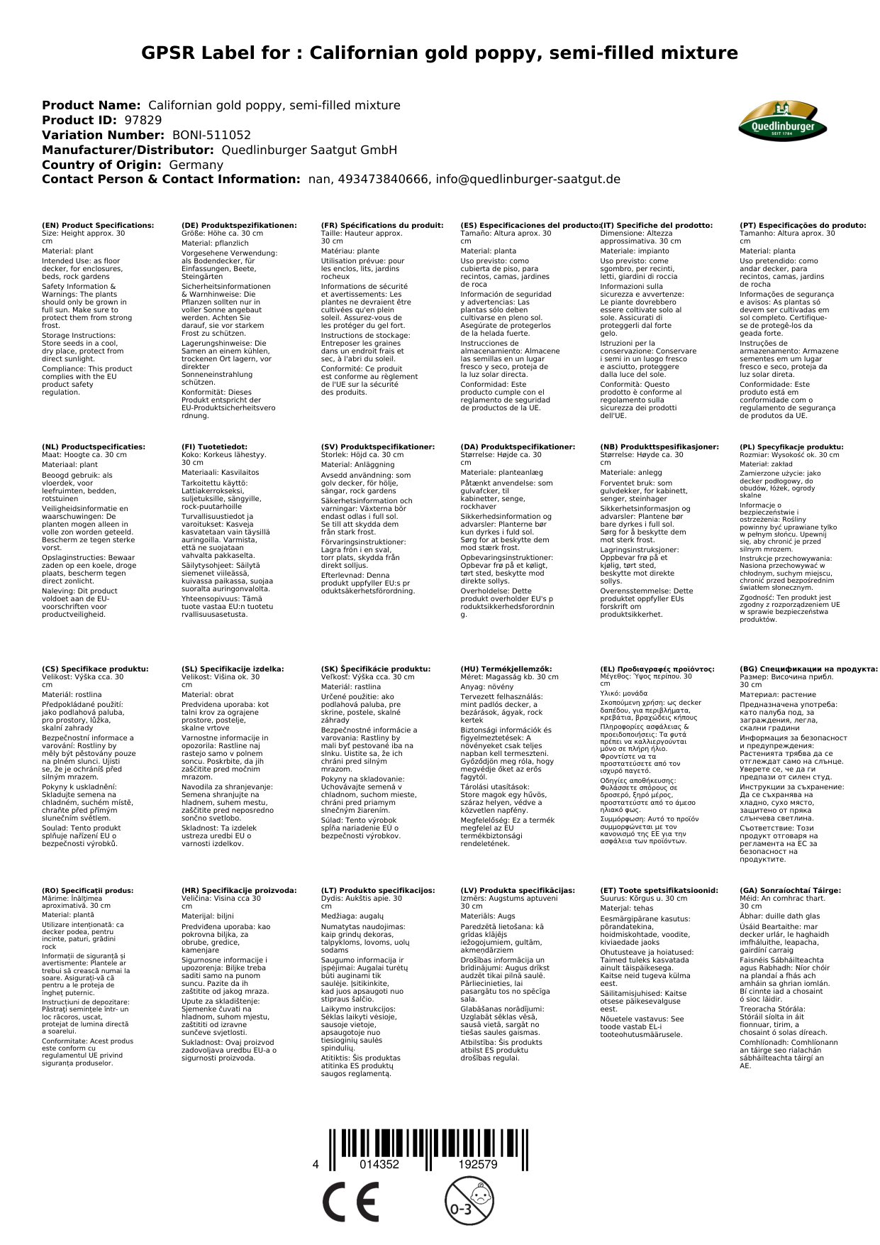 | Brand: | Quedlinburger |
