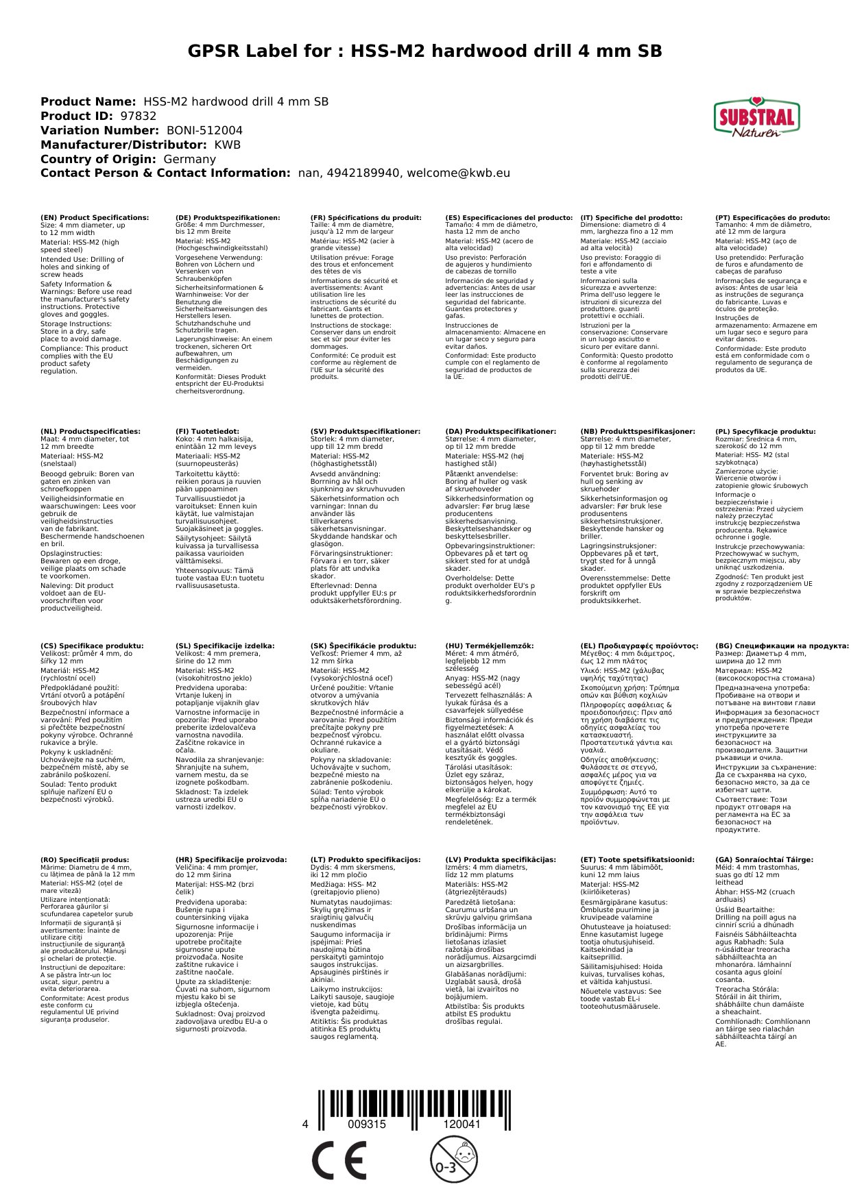 Tá an druil deartha go príomha le haghaidh adhmad crua, ach is féidir é a úsáid freisin le haghaidh adhmad bog. Molaimid druileanna speisialta le haghaidh miotail nó cloiche.