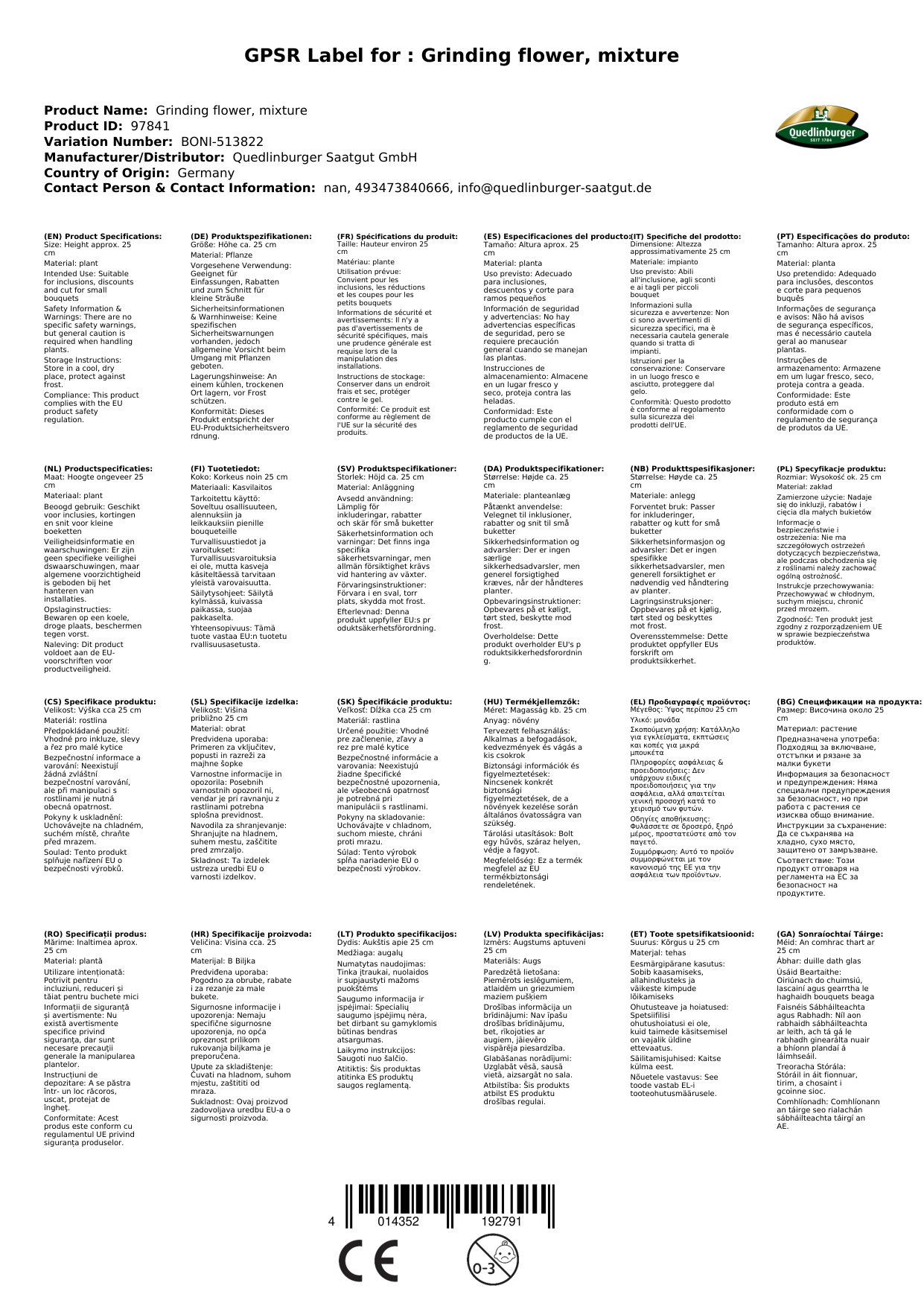 | Brand: | Quedlinburger |