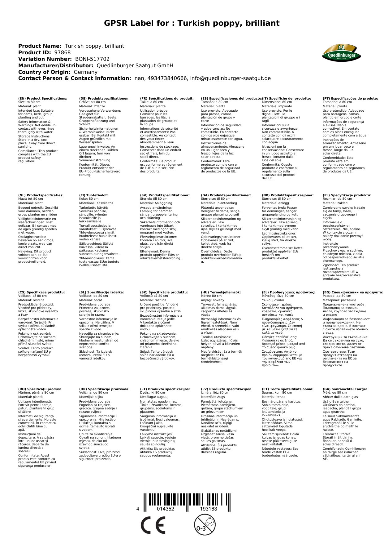 Ríomhphost na Duine Freagrach don AE: info@quedlinburger-saatgut.de