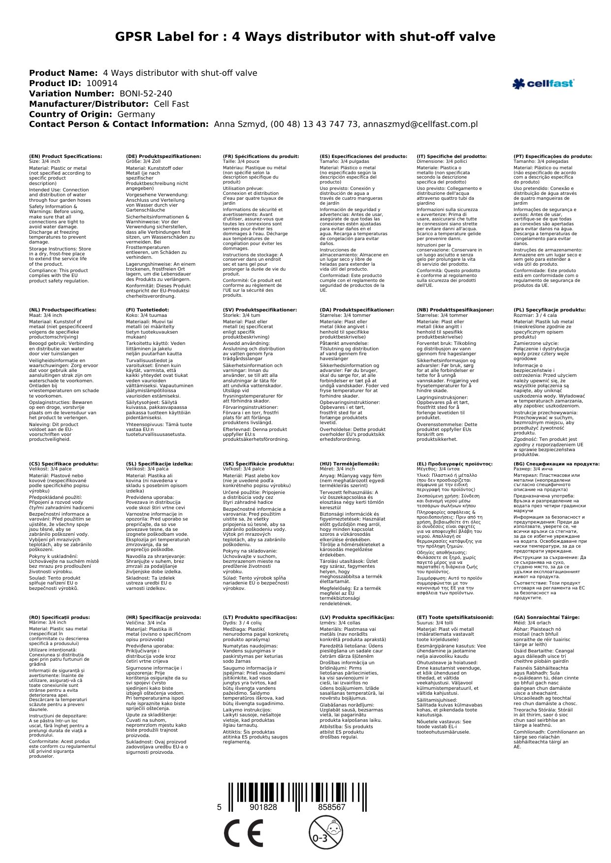 Leis an Ilroinnteoir Gairdín 4 Bhealach againn le Comhla Stoptha, is féidir leat suas le ceithre phíobán gairdín a cheangal le sconna uisce amháin ag an am céanna. Is féidir leat sreabhadh uisce gach asraoin a rialú agus a stopadh ar leithligh, rud a thugann smacht iomlán duit ar uisciúcháin do ghairdín. A bhuíochas leis an adapter, tá an t-ilroinnteoir comhoiriúnach le trastomhais píobáin éagsúla. Faigh amach na buntáistí a bhaineann le bainistíocht uisce solúbtha agus éifeachtach do do ghairdín anois!