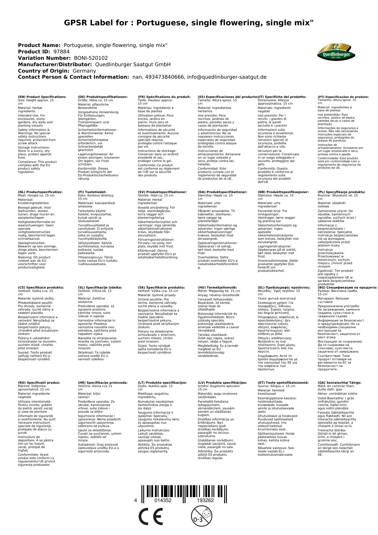 | Brand: | Quedlinburger |
