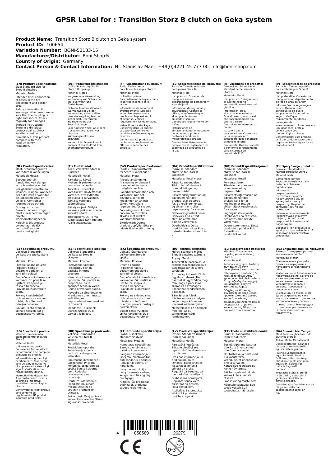 An bhfuil nasc iontaofa uait idir córais píobáin éagsúla? Cuireann an Feistiú Trasdula Storz B ar fáil réiteach sábháilte agus láidir don tionscal, don tseirbhís dóiteáin, don talmhaíocht agus go leor eile. Leis an bhfeistiú trasdula seo, is féidir leat do chúpláin Storz B atá agat cheana féin a oiriúnú go héasca do chórais eile. Faigh amach na buntáistí anois!