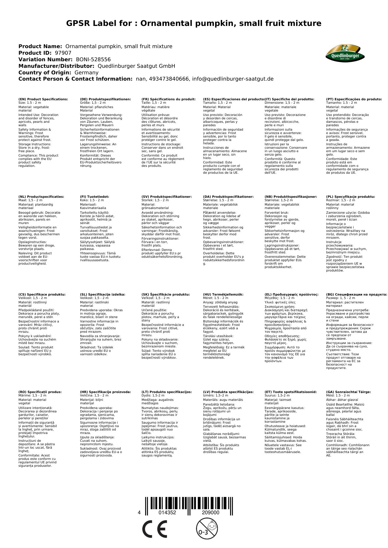 | Brand: | Quedlinburger |