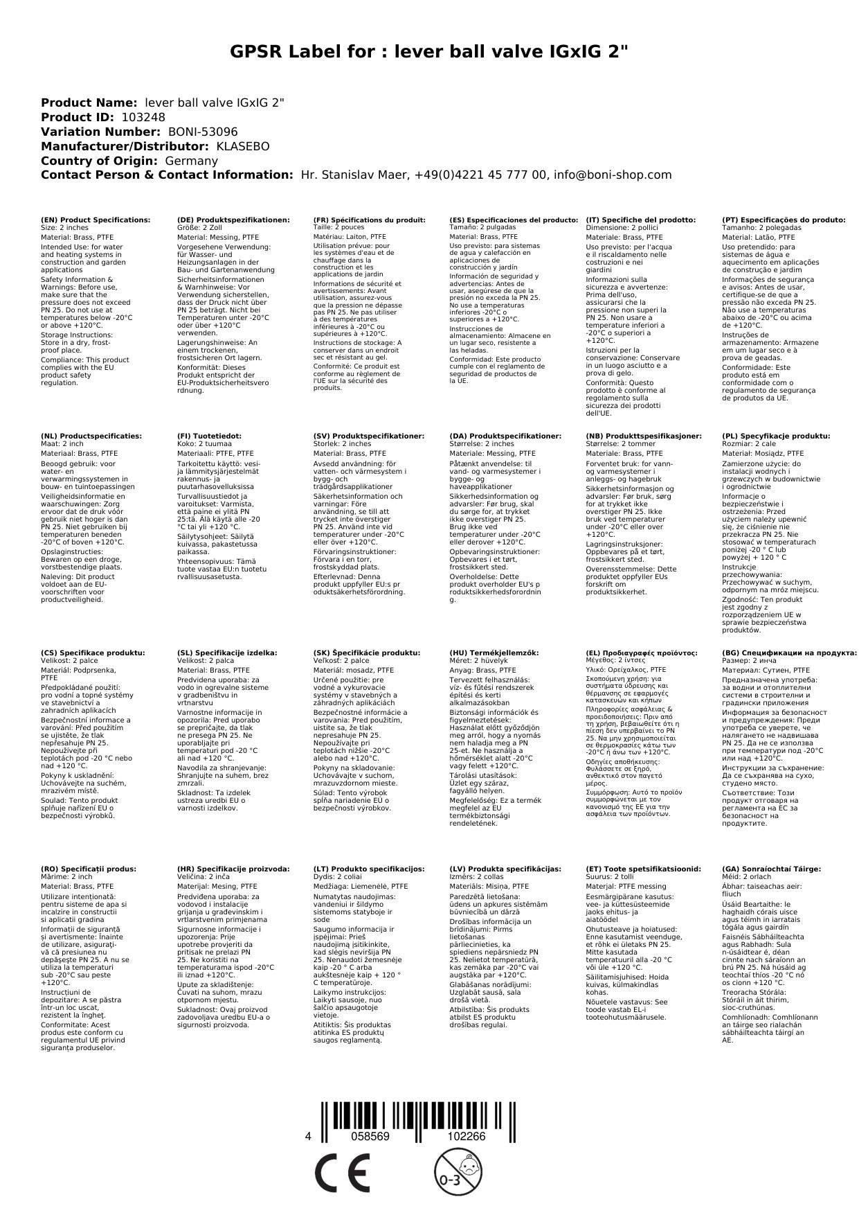 Sea, déantar an comhla liathróid as prás de réir DIN DVGW 50930-6(CW 617 N) agus mar sin tá sé oiriúnach d'uisce óil.