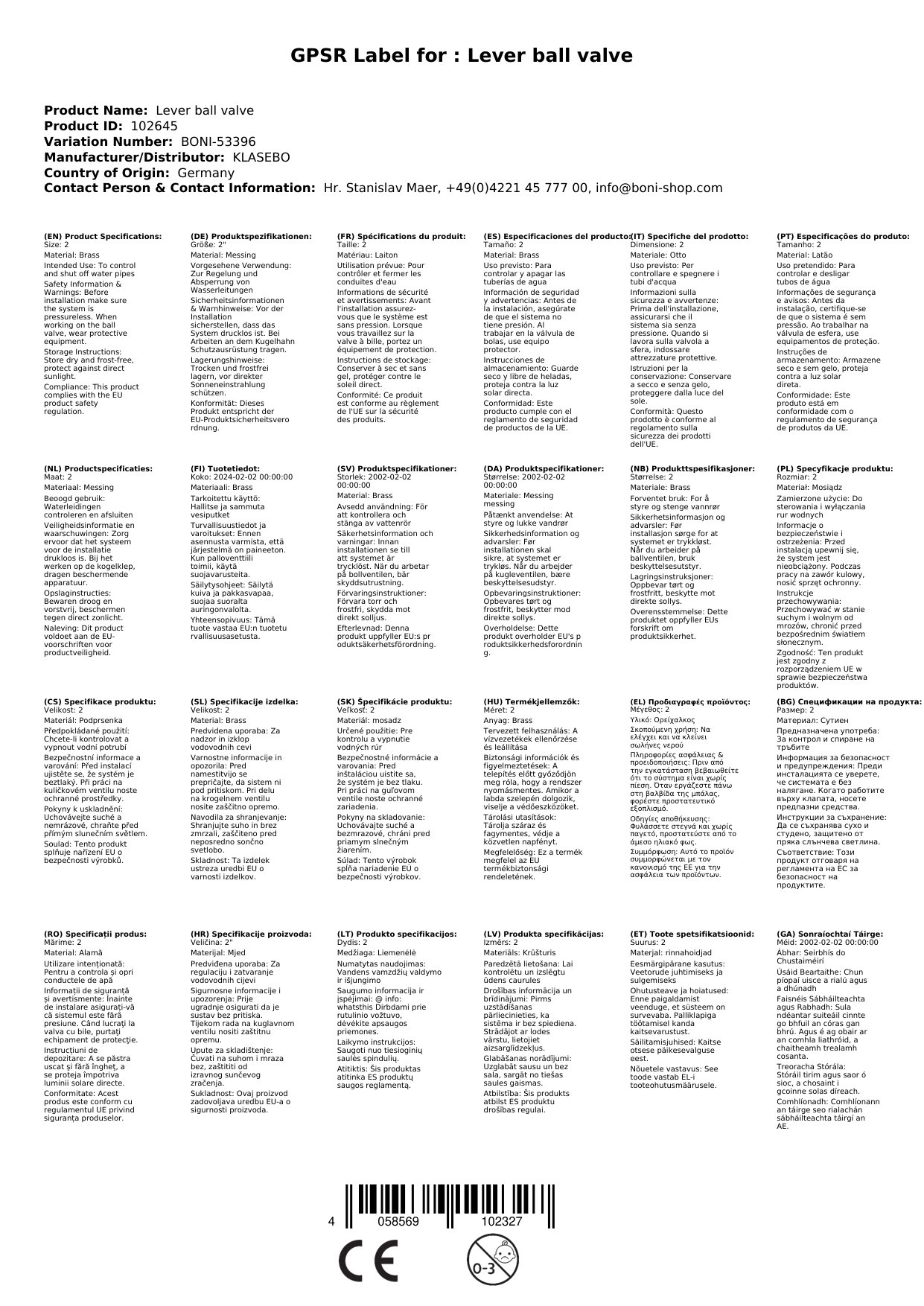 Sea, déantar an comhla liathróid as práis de réir DIN DVGW 50930-6 (CW 617 N) agus dá bhrí sin tá sé oiriúnach d'uisce óil.