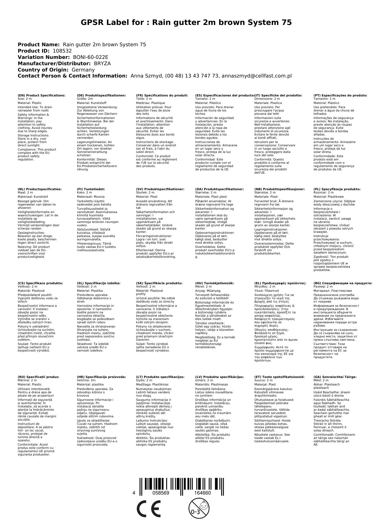 Cuireann ár ngáitéar báistí cosaint iontaofa ar fáil do do theach. Le fad 2 mhéadar agus an dath donn (RAL 8017), luíonn sé go tarraingteach le haon timpeallacht. Tá an córas 75 idéalach d'fhoirgnimh bheaga. Cén fáth go bhfuil sé seo tábhachtach duit: Faigheann tú réiteach buan agus aeistéitiúil chun uisce báistí a dhraenáil.