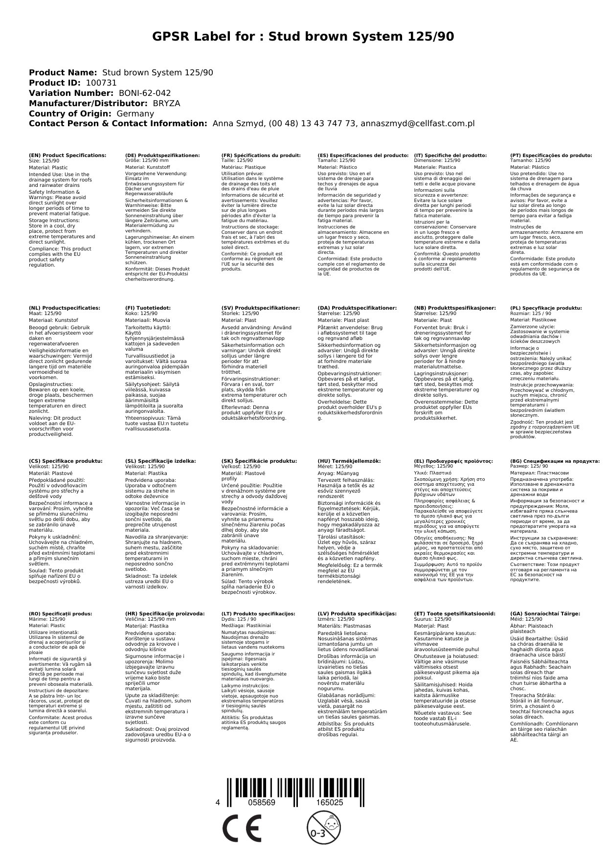 Tá an stút deartha go speisialta do chórais braon dín le toisí 125/90. Seiceáil toisí do braon dín sula gceannaítear é.