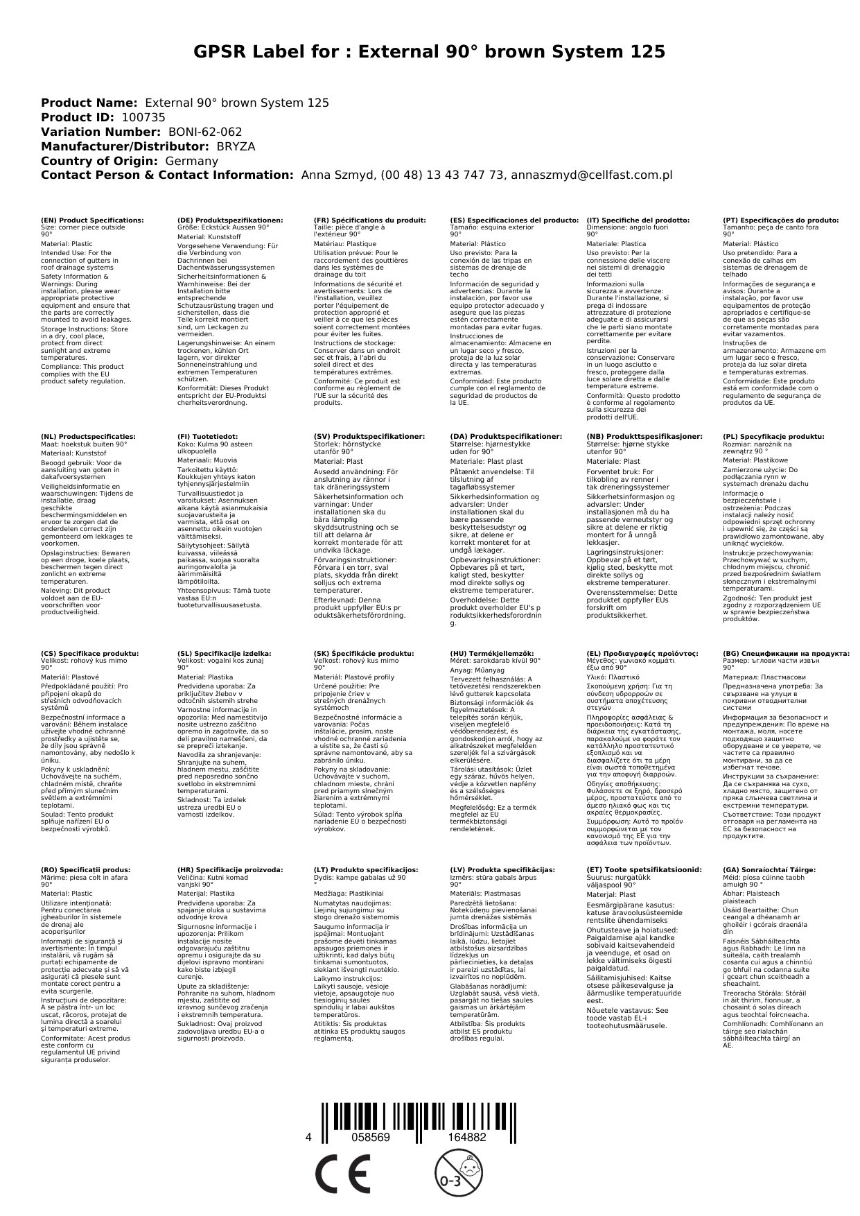 Cinntigh sreabhadh réidh uisce báistí leis an gcúinne láidir seo a d'oirfeadh go beacht. Is é an cúinne donn 90° amuigh don chóras 125 an réiteach iontach chun do shruthán a nascadh go hiontaofa agus chun an t-uisce a dhraenáil go sonrach. Le suiteáil éasca agus ard-fhriotaíocht aimsire, is infheistíocht fhadtéarmach é an píosa cúinne seo do do theach.