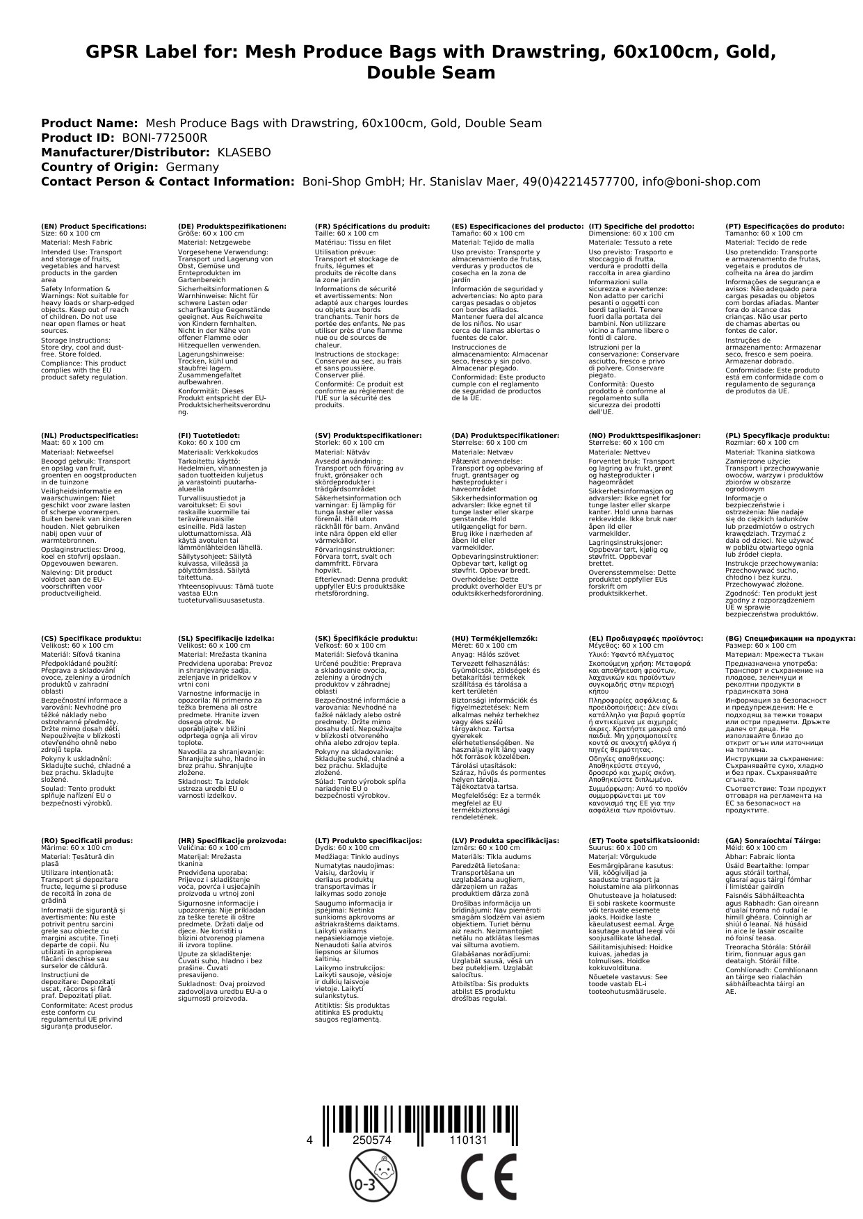 Cuireann ár málaí raschel le tarraingt an meascán idéalach de chosaint agus de chompord ar fáil duit do do bharra. Le méid 60x100 cm agus an dúnadh tarraingthe praiticiúil, tá siad éasca le láimhseáil agus cinntíonn siad stóráil shábháilte agus iompar éasca. Déanann an dearadh buí órga sé éasca do tháirgí a aithint. Cén fáth a bhfuil sé seo tábhachtach duit: sábhálann tú am agus iarracht agus tú ag pacáil agus baineann tú leas as stóráil optamach do bharra luachmhar.