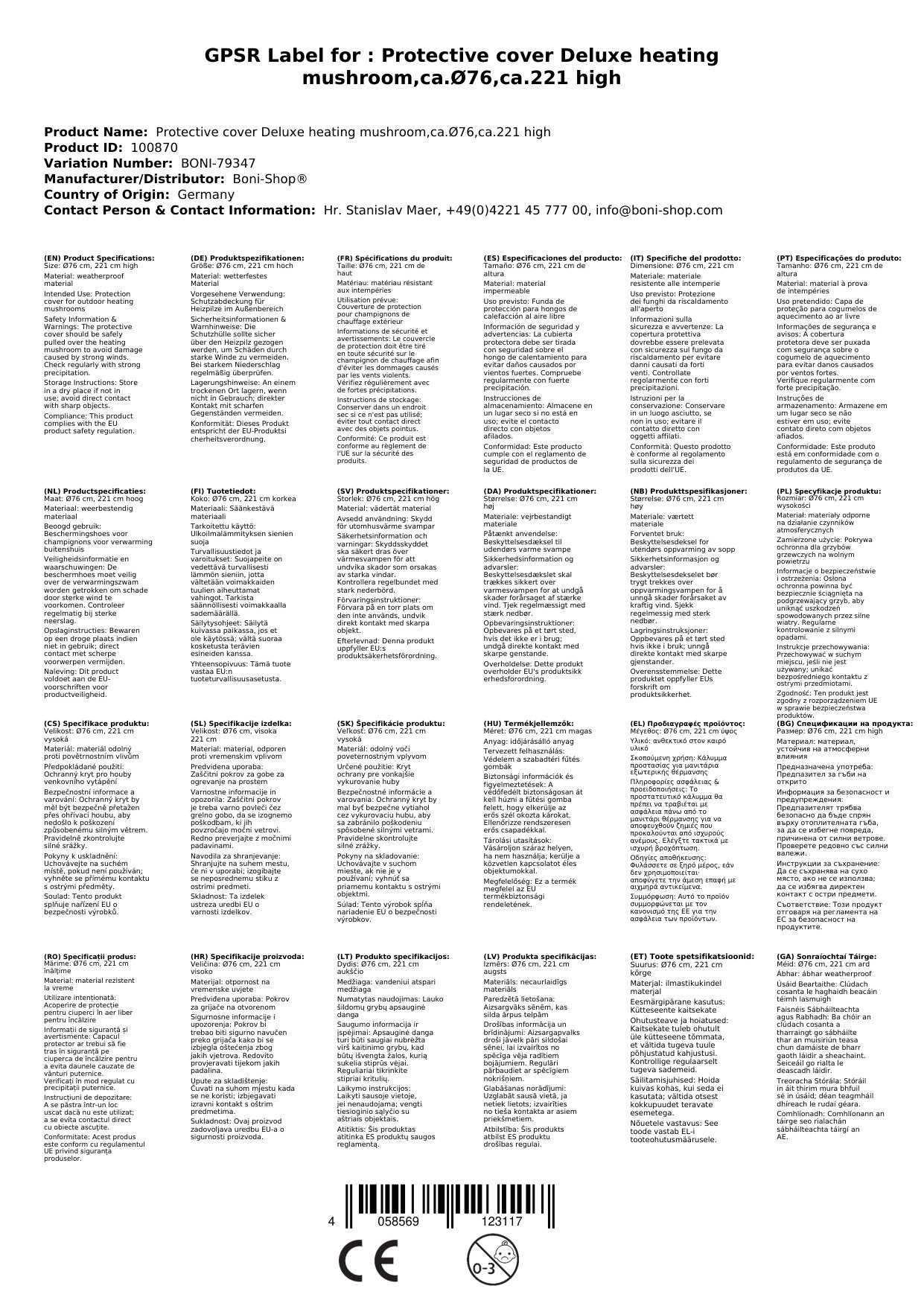 Cuireann ár gclúdach téitheoir patio cosaint iontaofa ar fáil do do théitheoir. Leis an ábhar láidir poileistear 420D agus na toisí de thart ar Ø76 cm agus airde thart ar 221 cm, seasann sé le coinníollacha foircneacha aimsire. A bhuíochas leis na hairíonna uiscedhíonacha agus UV-dhíonacha, is féidir leat brath ar chlúdach cosanta fadtéarmach a chosnaíonn do théitheoir patio ar feadh na mblianta.