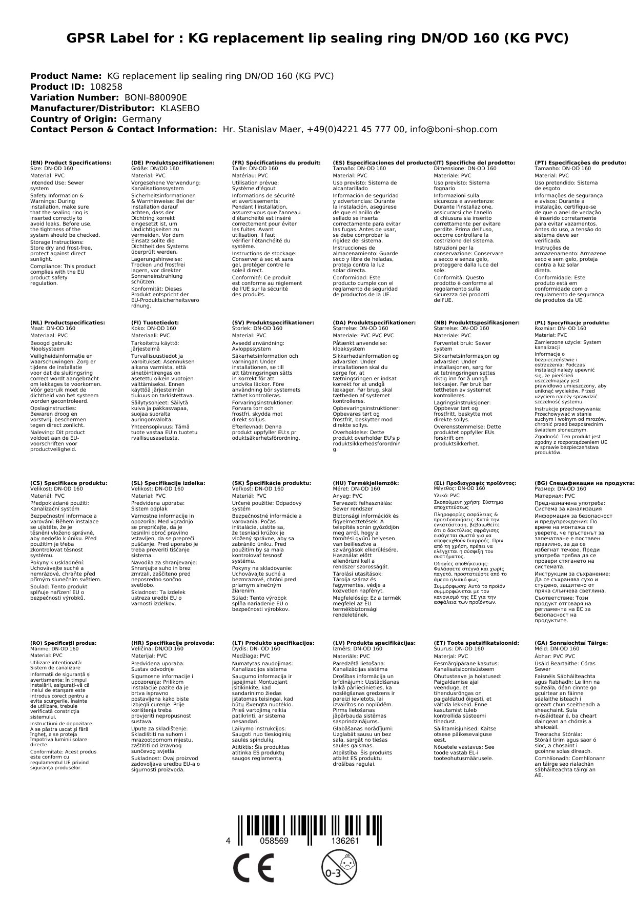 Ríomhphost na Duine Freagrach don AE: info@boni-shop.com