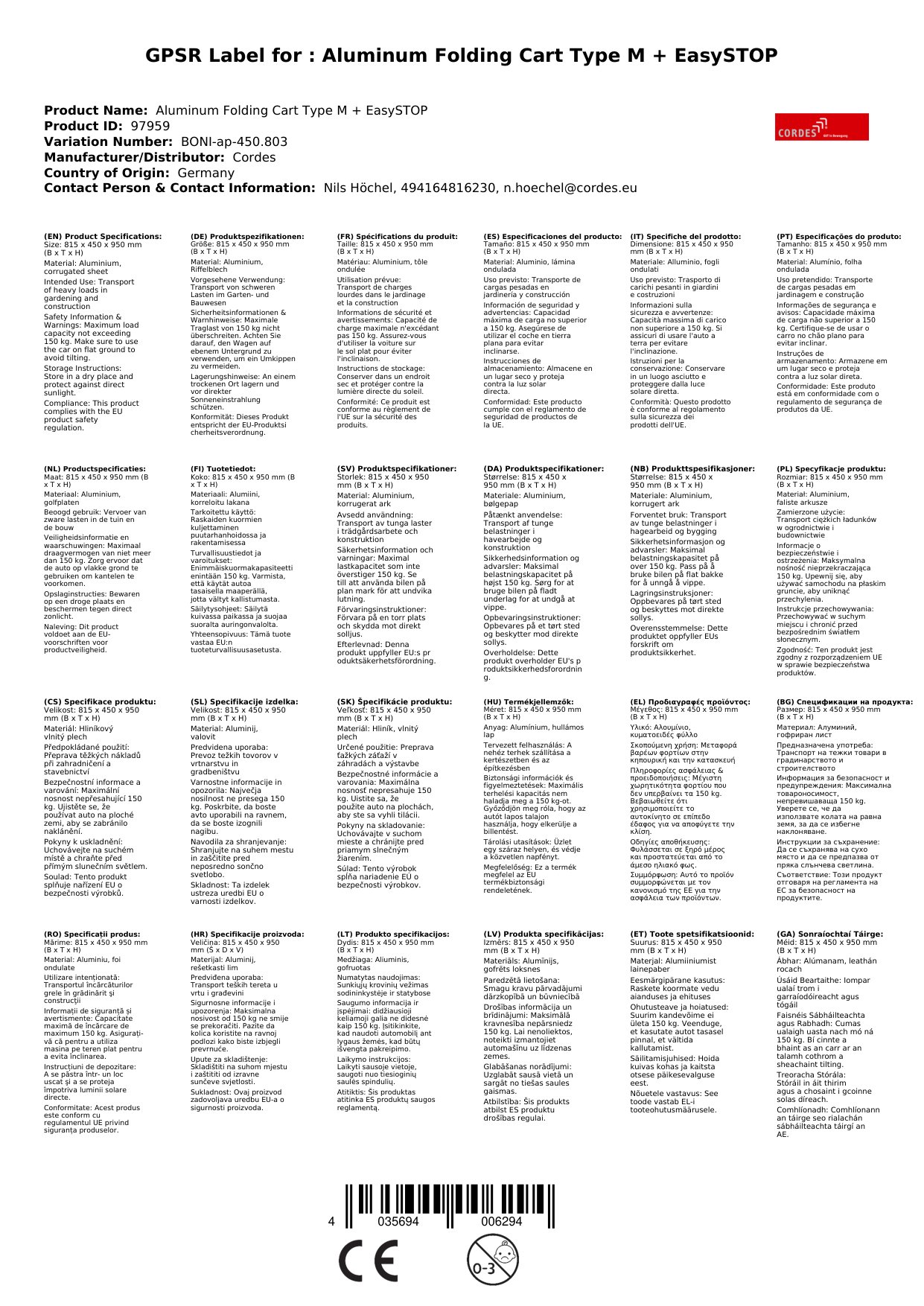 | Brand: | Cordes |