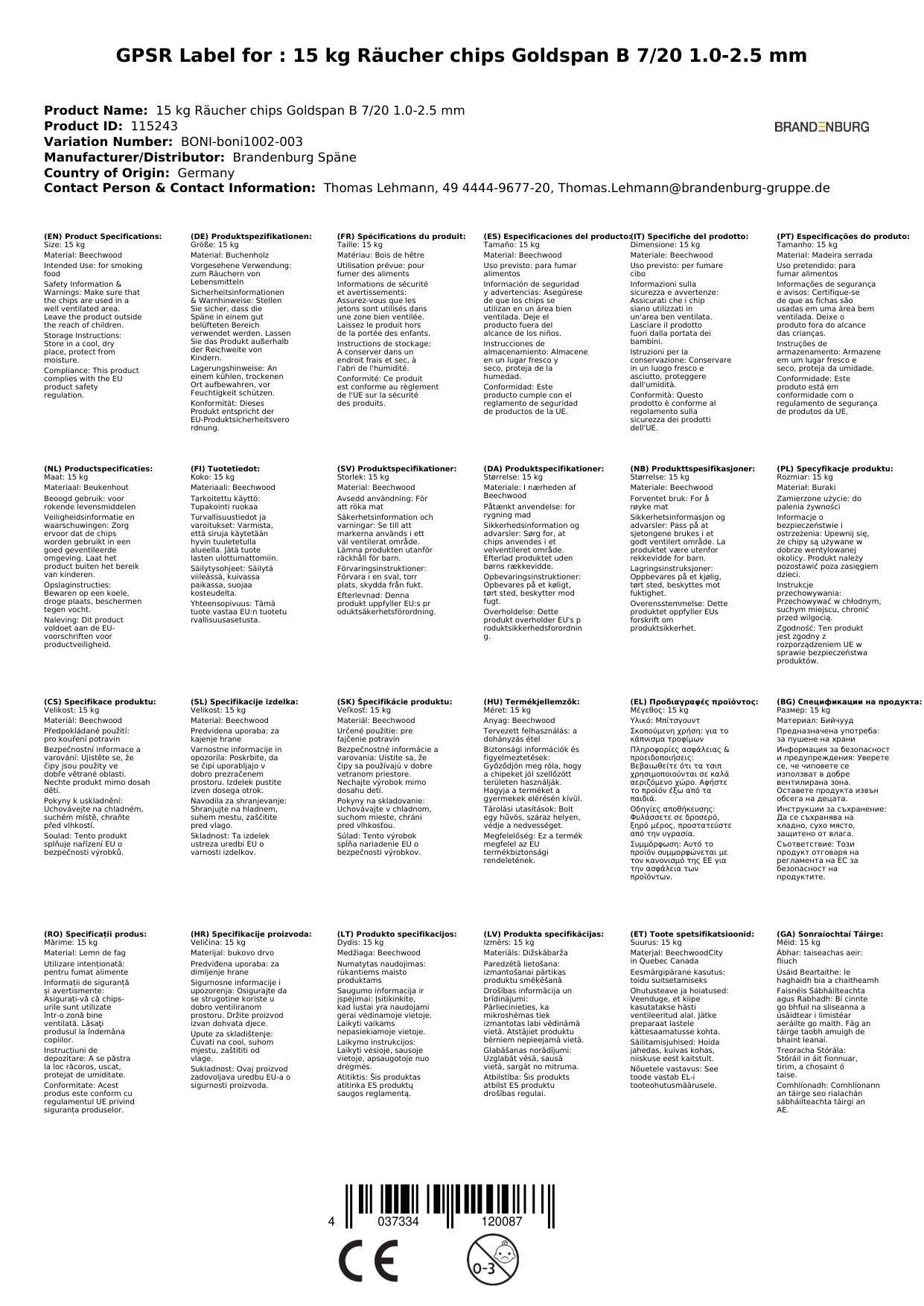 | Brand: | Brandenburg Späne |