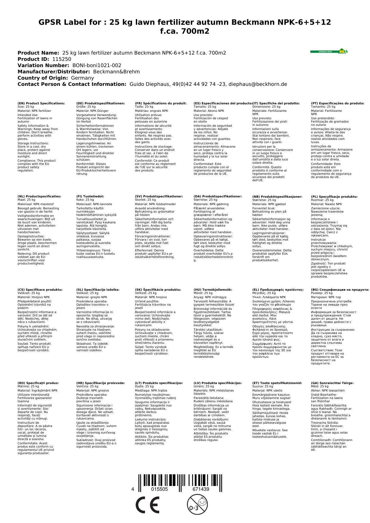 Leasachán faiche 25kg, Leasachán faiche fómhair, Leasachán NPK, f.ca. 700m²