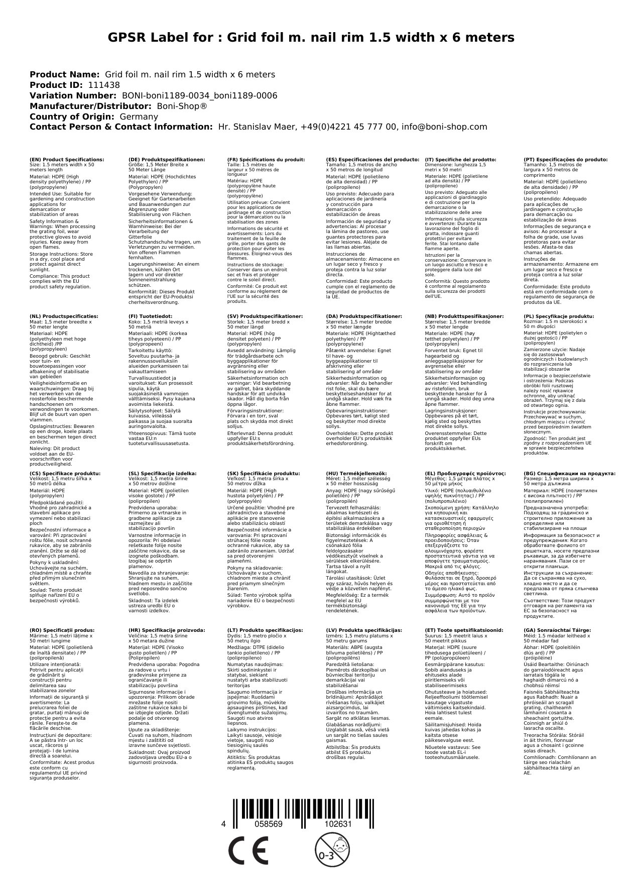 Ríomhphost na Duine Freagrach don AE: info@boni-shop.com