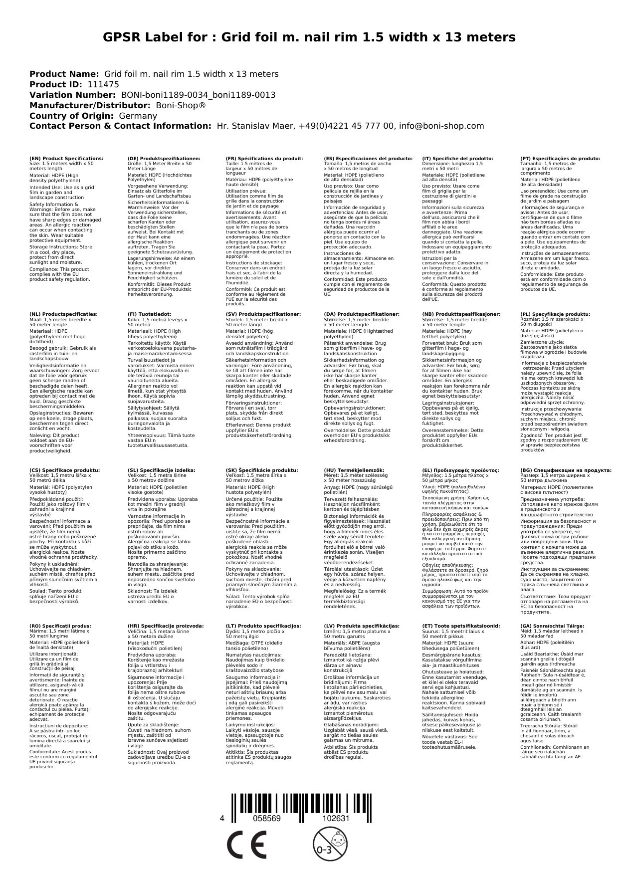 Ríomhphost na Duine Freagrach don AE: info@boni-shop.com