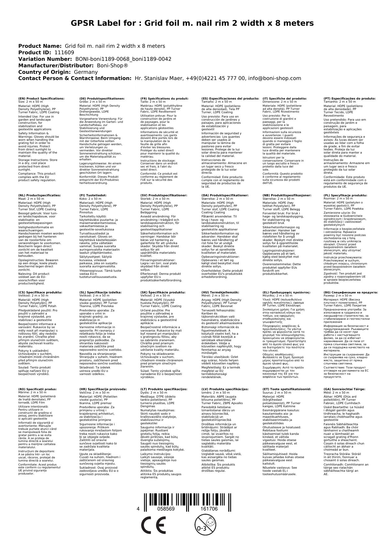 Ríomhphost na Duine Freagrach don AE: info@boni-shop.com